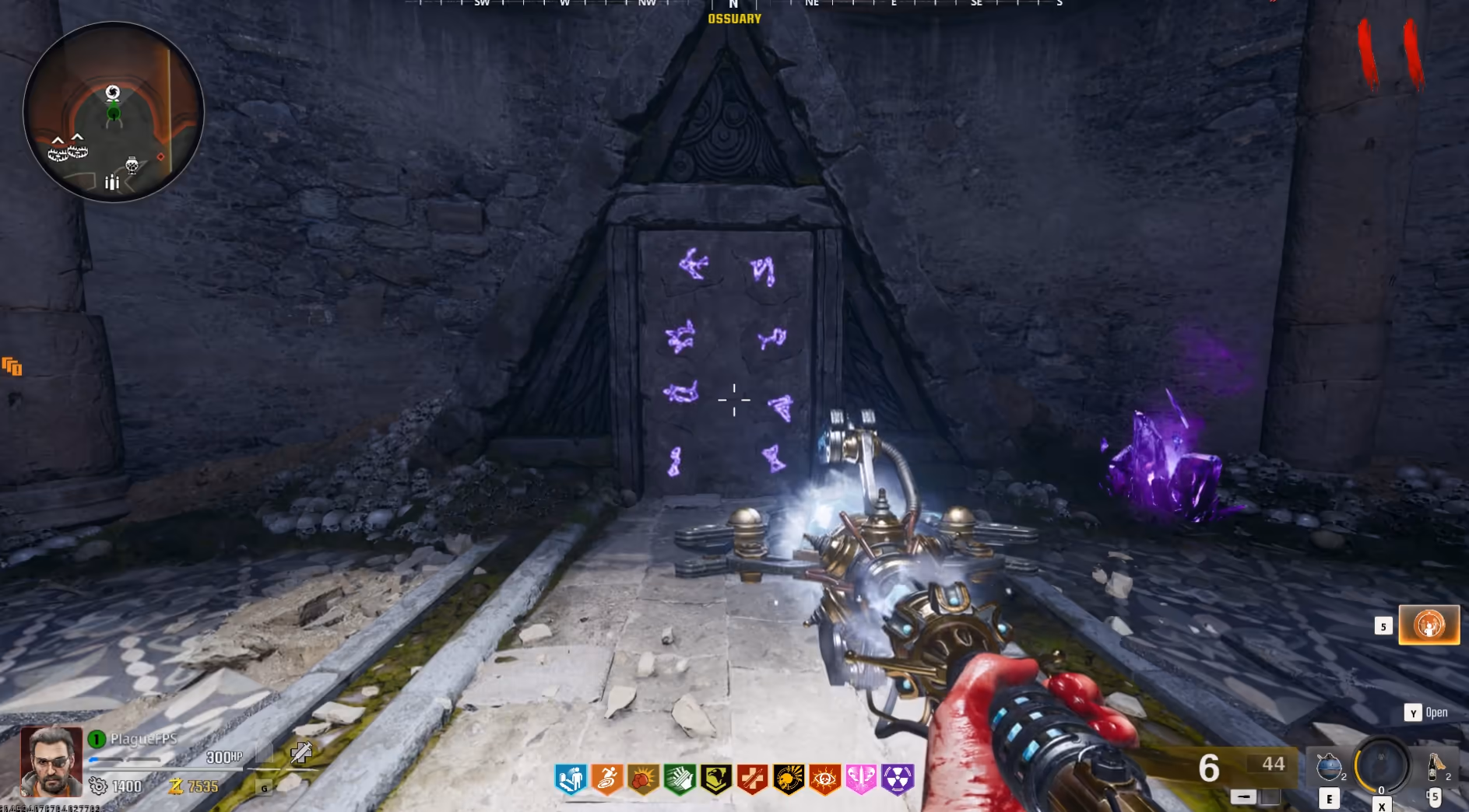 Once illuminated, shoot the symbols in numerical order this time for only 8 symbols, triggering a set of lockdowns which once completed will spawn the Staff Piece out of the wall with the Roman Numerals.