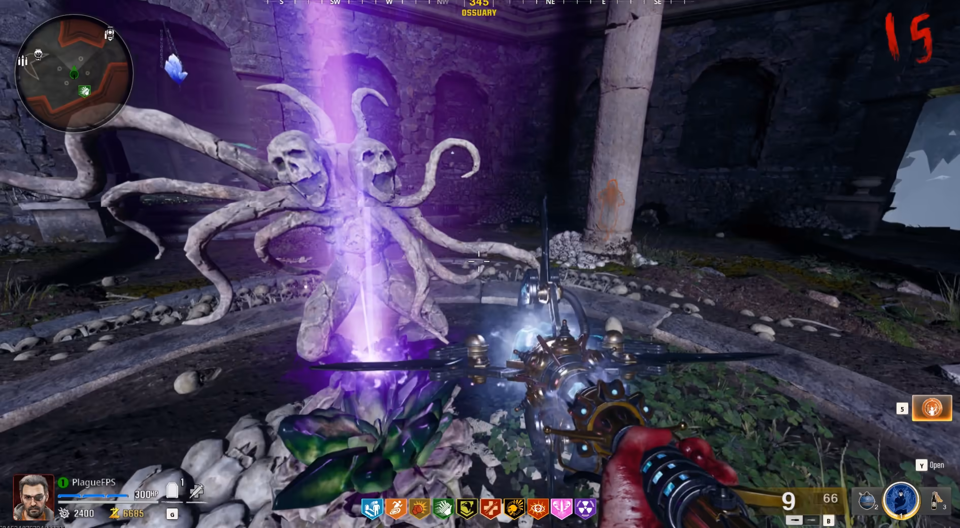 Once they are damageable, shoot another charged Ull's Arrow shot or activate Loading... and focus fire on one artifact at a time until it breaks. Once broken, you cannot damage the others, and Doppelghasts, and Amalgams will begin to spawn, which you should focus fire on to kill them quickly.