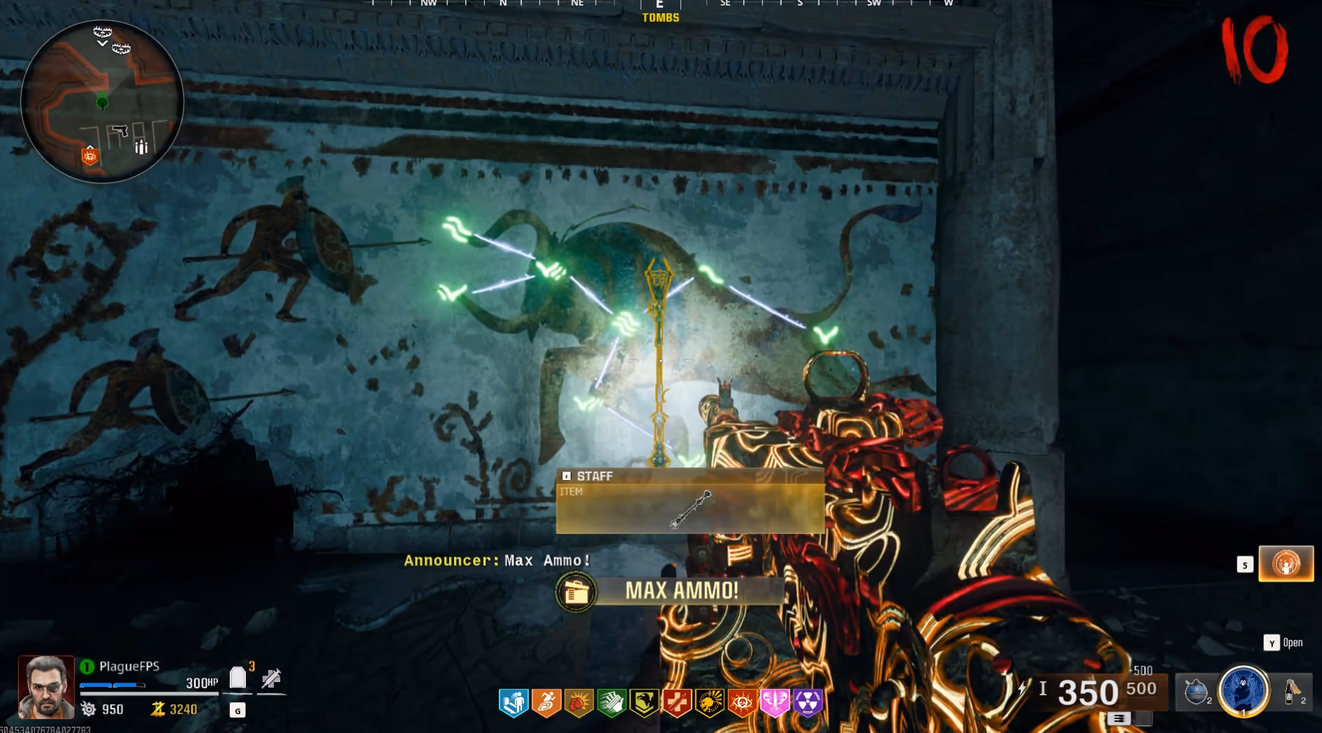 This lockdown spawns in a lot of zombies, with the focus being on the zombies containing purple eyes and smoke emitting from them indicating they will only go after the Staff of Ice. Focusing on killing those zombies, and parasites while hording the rest of them can make this much easier.
