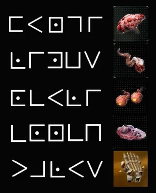 Once you know your three symbols, input them into the cube, and confirm your selection by interacting with the eyeball, revealing the Necrofluid Gauntlet for you to claim. Once claimed, a small lockdown will begin, where you'll need to shoot all the green orbs with the Necrofluid Gauntlet and then reload to retract the spikes, pulling in the green orbs, once all green orbs are pulled in, the lockdown will end.