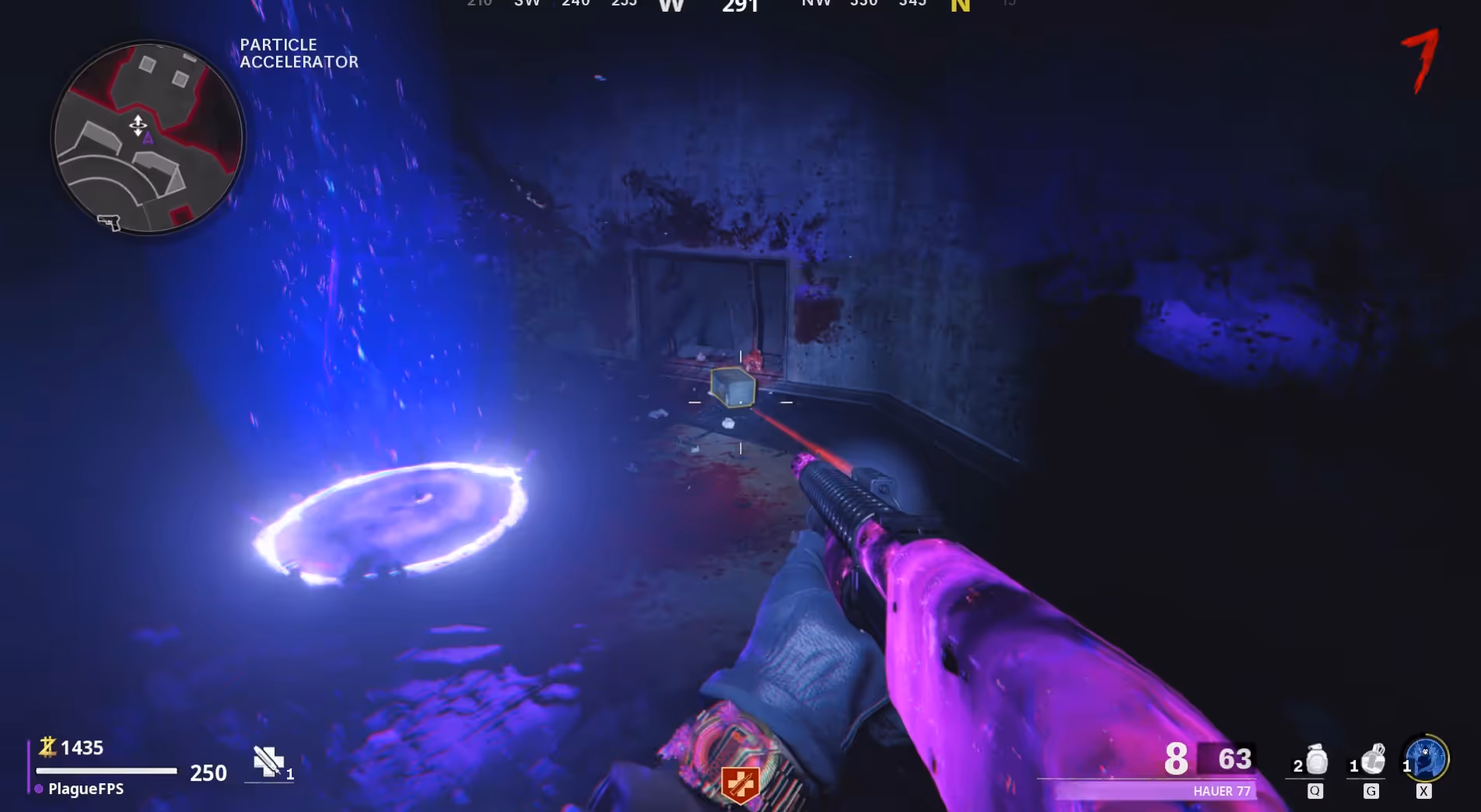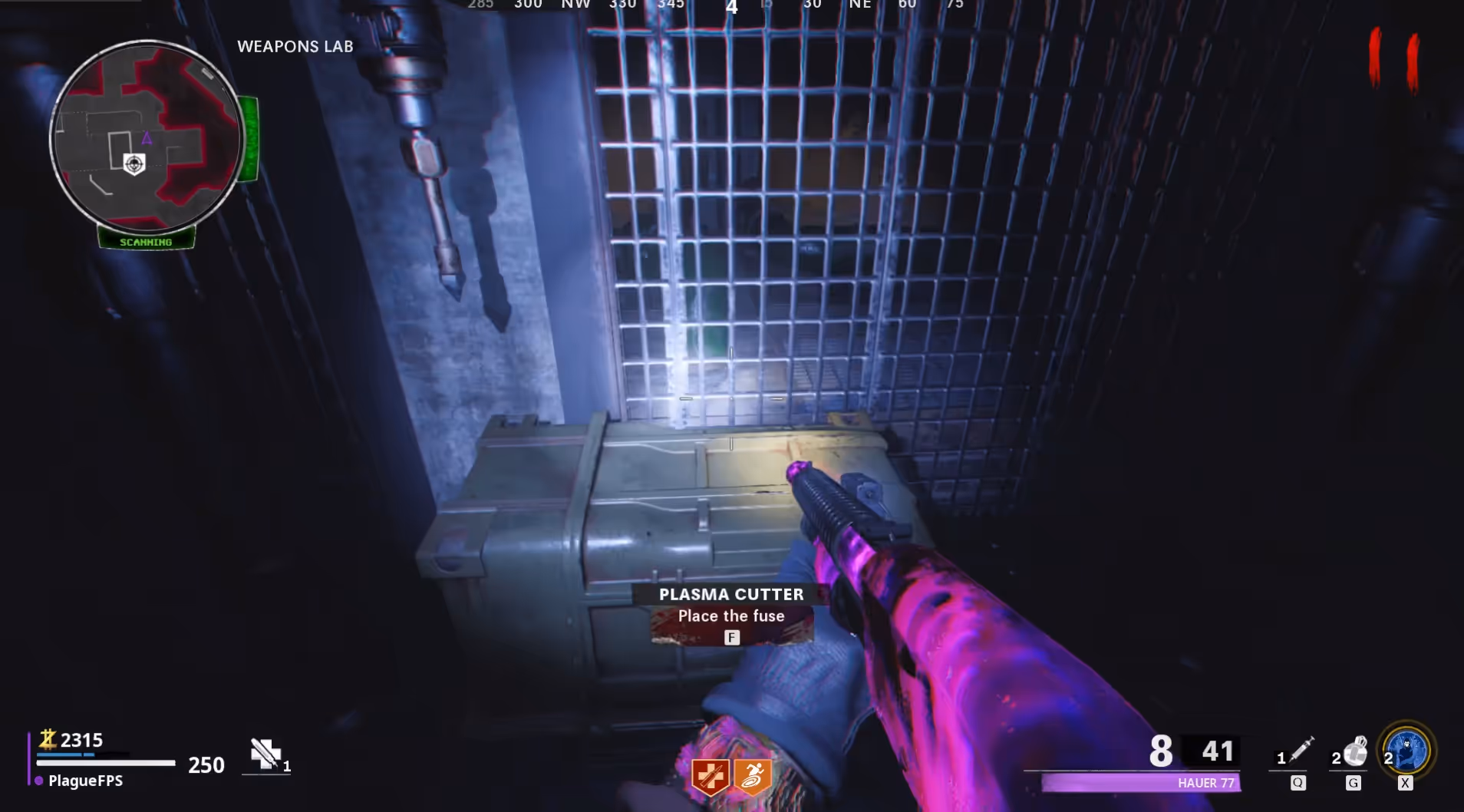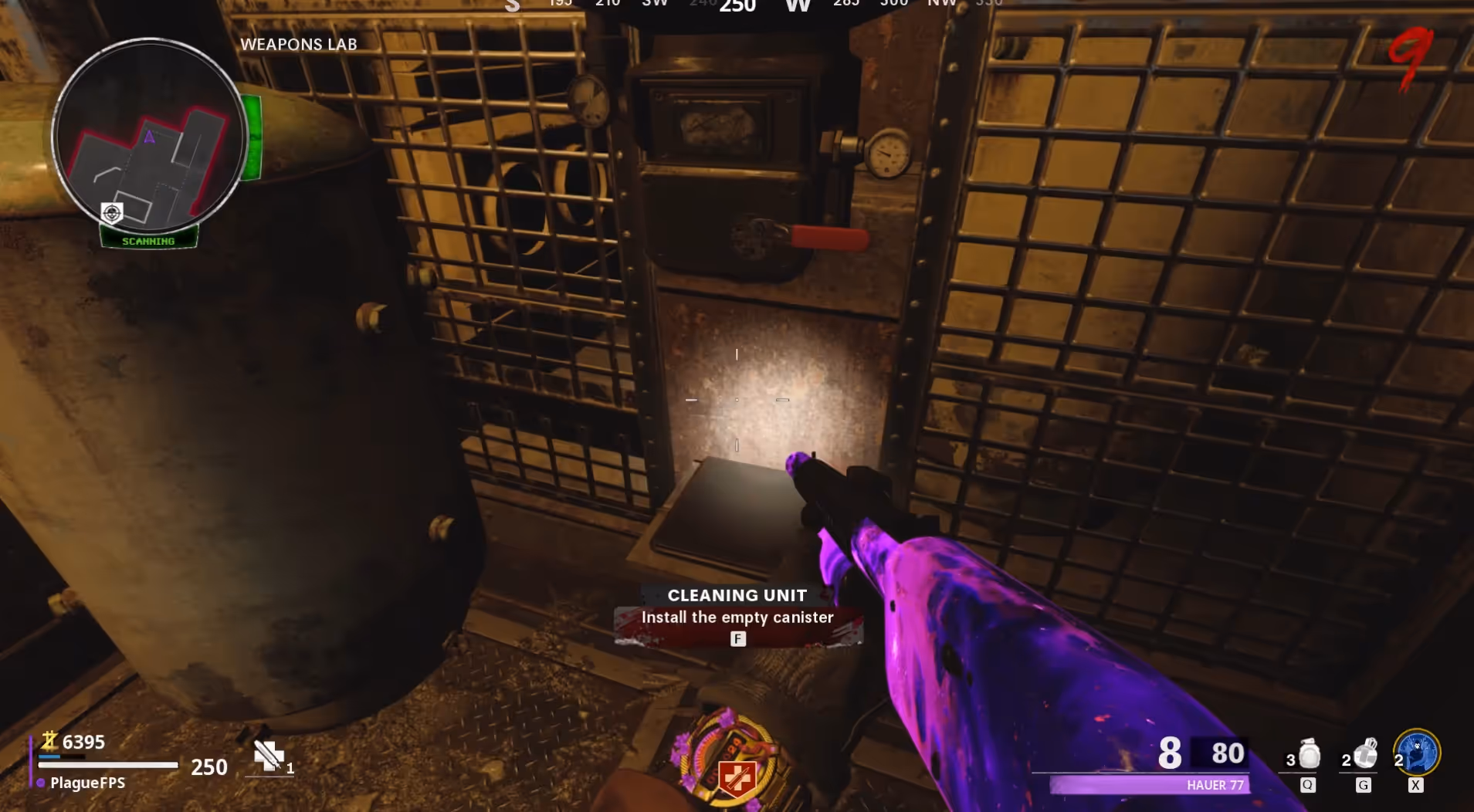Once you have the gas canister, head to the bottom area of the Weapons Lab where Loading... is located and place the gas canister on the Cleaning Unit, in the corner right of the perk machine. Afterward, you must kill a Plaguehound near that gas canister to have it suck up the gas and contain it inside the canister.