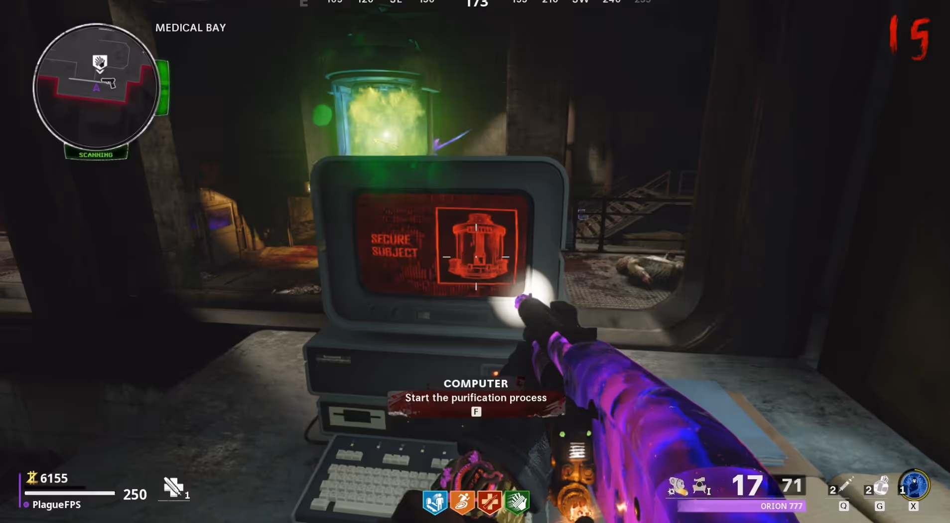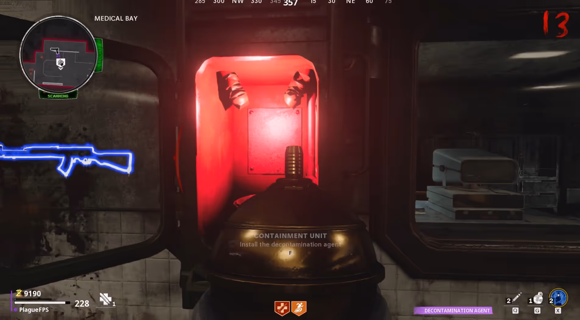 Head to the Crash Site and interact with the Decontamination Agent to pick it up. Doing so will spawn infinite Plaguehound and prevent you from being able to defend yourself while you are holding it, bring the agent to the Medical Bay and place it inside the Containment Unit next to the Type-63 wall buy.