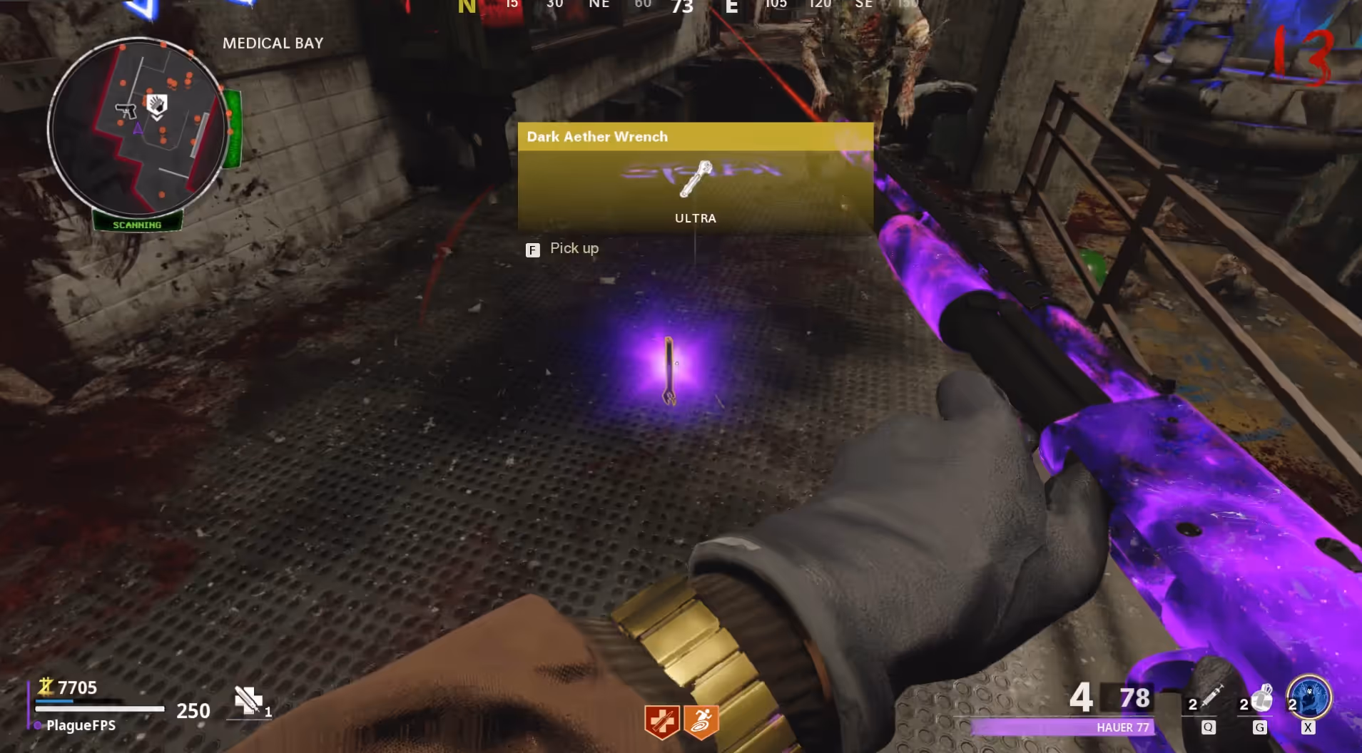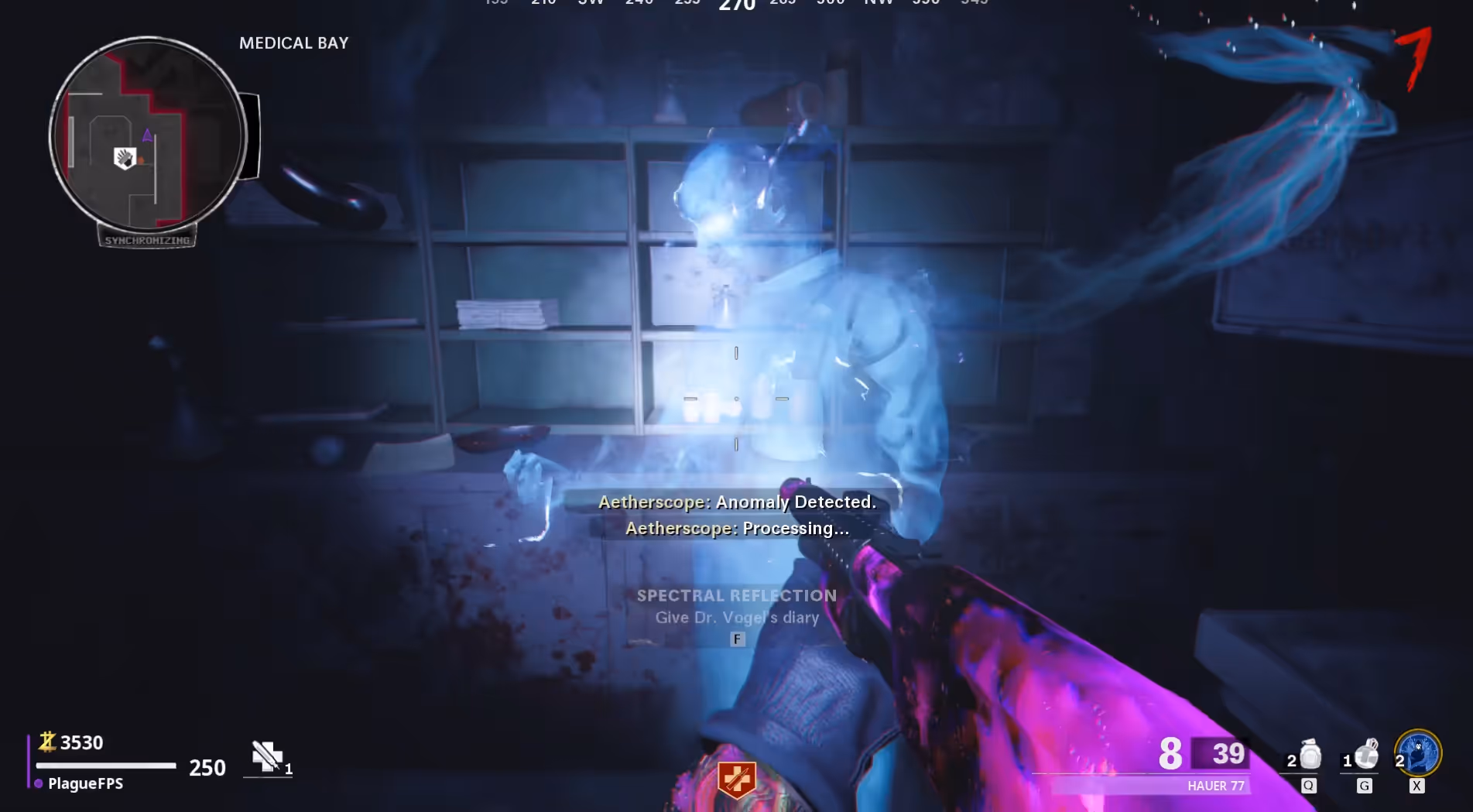 Once you have all three parts, head to the bottom area of the Particle Accelerator behind Pack-a-Punch. There, you will find a workbench where you must assemble the Aetherscope. Afterward, interact with it to collect it, spawning a new dimensional breach within the Medical Bay and completing this step.