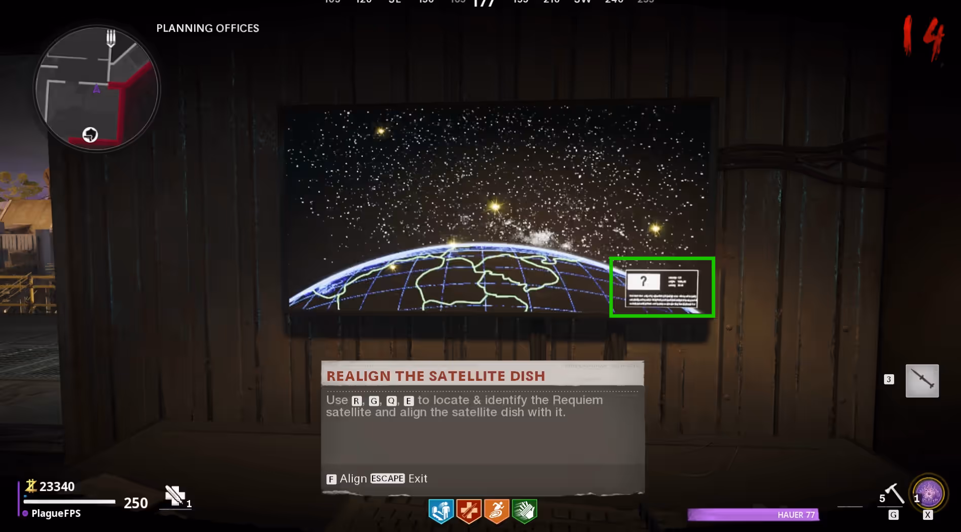 Head to the Planning Offices and interact with the computer screen on the wall to begin a mini-game. Your goal in this mini-game is to move the blue dot over the yellow orb that shows a flag with a question mark in the bottom right corner of the screen and press the align button on that orb.