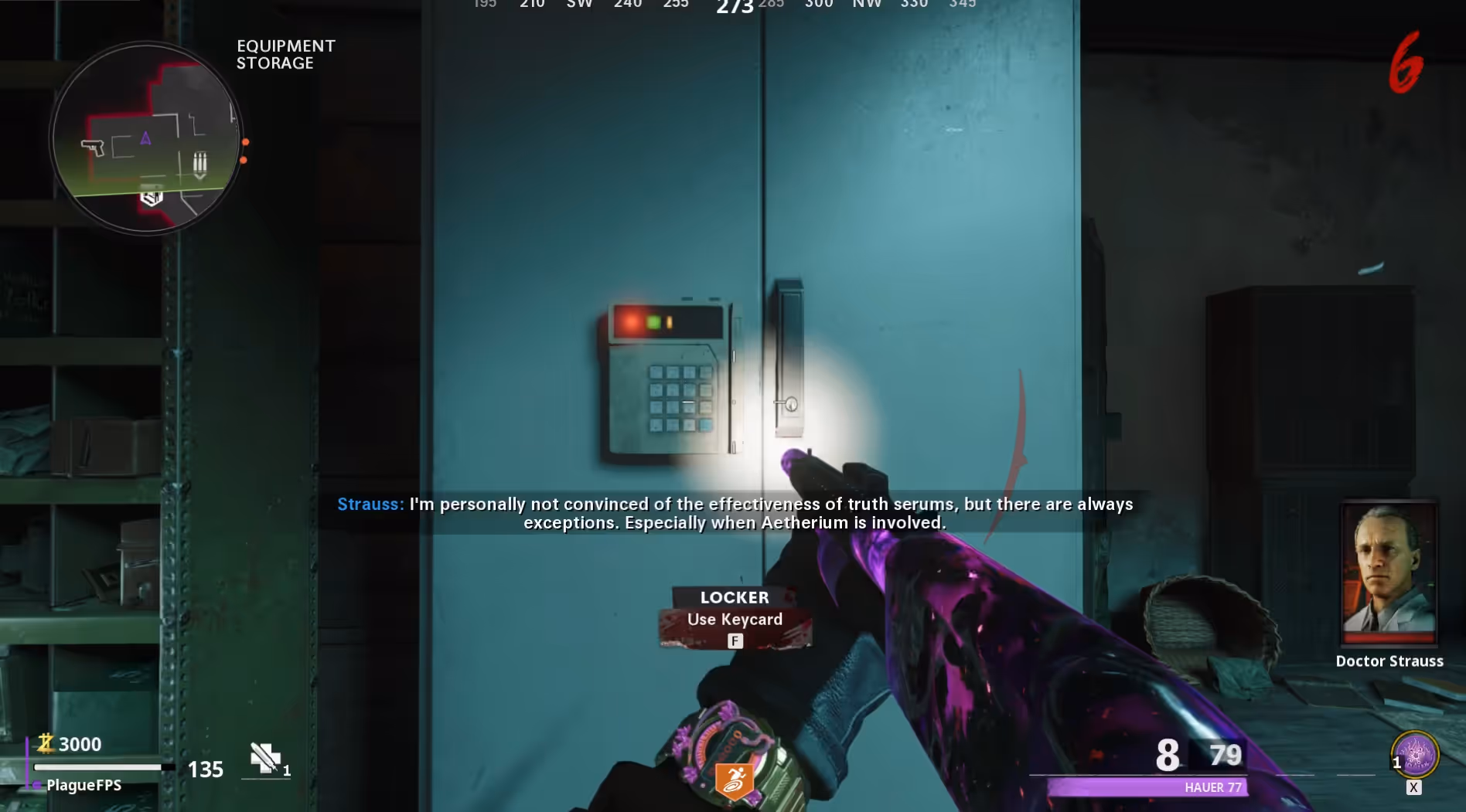 Enter the OPC and wait for the Dimensional Breach to spawn in, then head down to Mission Control to interact with Dr. Peck. Once Dr. Peck has closed the shutters on his window, wait until Ravenov tells you the code and interact with the locker to the left of his room to obtain the Aethermeter.