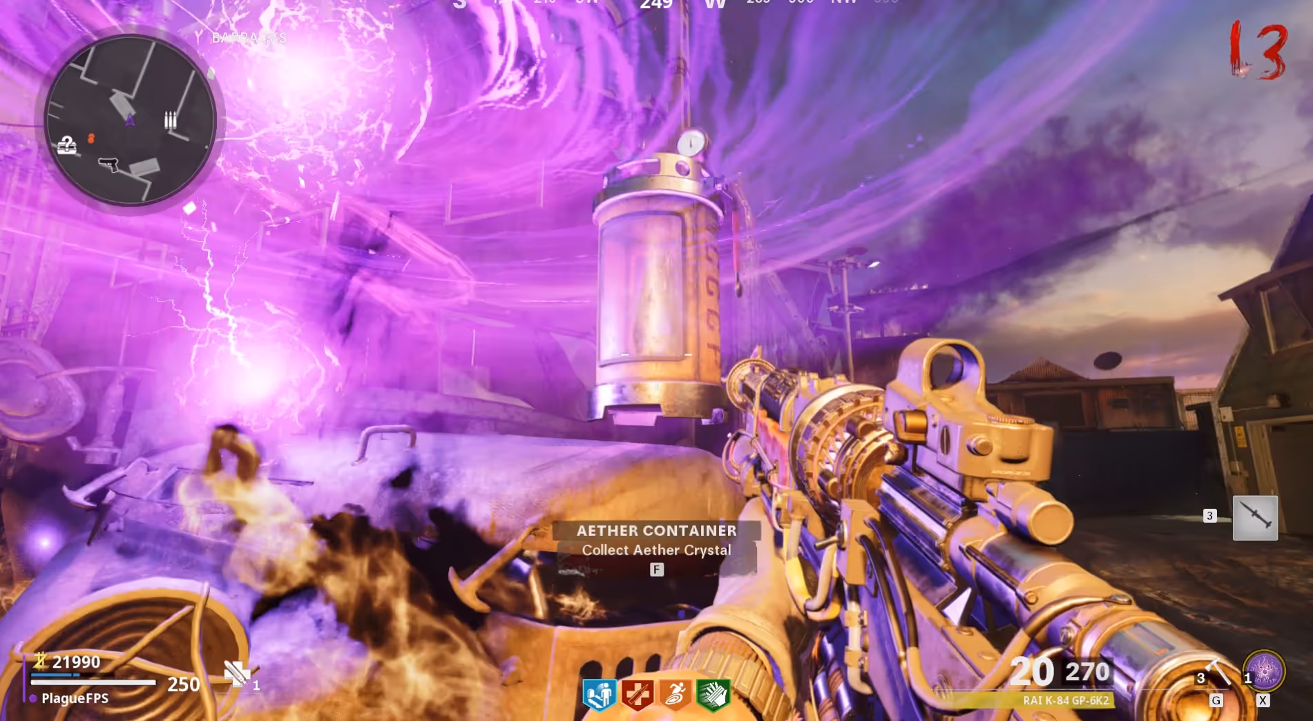 Once you have dug up this container, it will spawn a bubble that you must survive in. You don't need to kill any zombies inside but you can if you need to, and once the lockdown is over, collect the Aether Crystal and interact with the Aether Reactor inside the Military Command to place it inside.