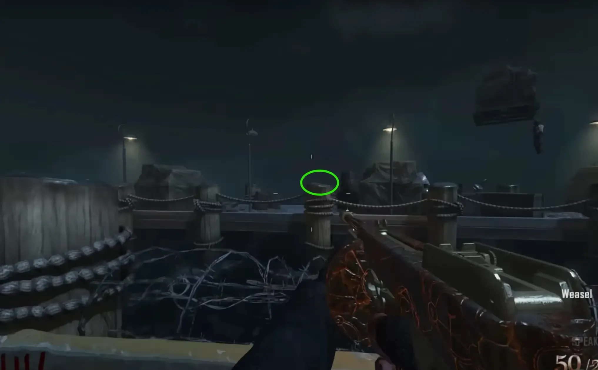 Head to the bottom of the Docks, to the left of the M1927 (Tommy Gun) wall buy will be a locked gate that you must open with the Warden's Key revealing a Volt Meter and another locked gate.