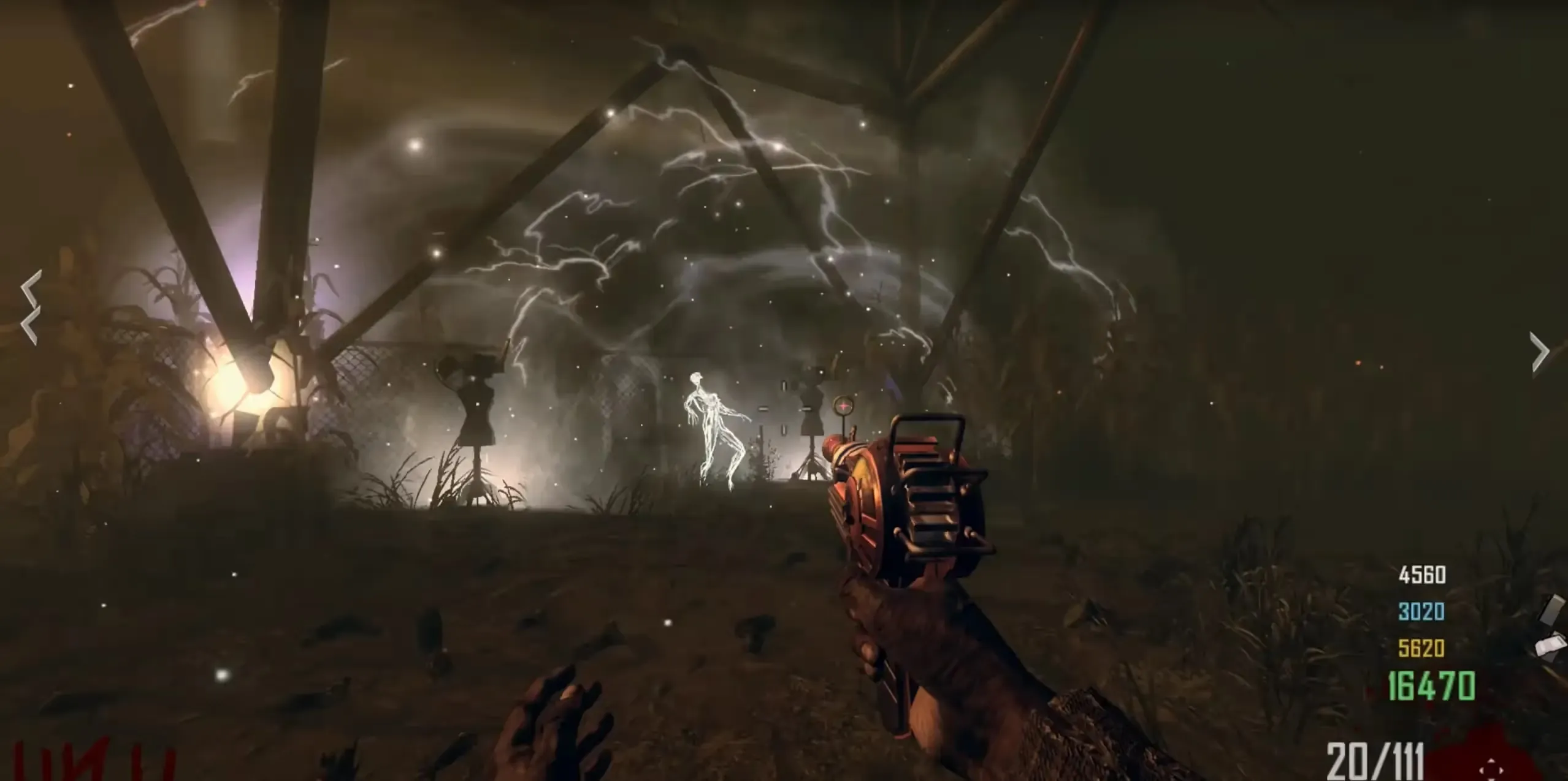 Using the Jet Gun fully charged, you must head beneath the Pylon in the cornfields between the Farm and the Power Station, and shoot the Jet Gun (heating up the Pylon) until it breaks. If done successfully, Richtofen will begin speaking to Samuel Stuhlinger, and the green lamps around the map will start flickering.