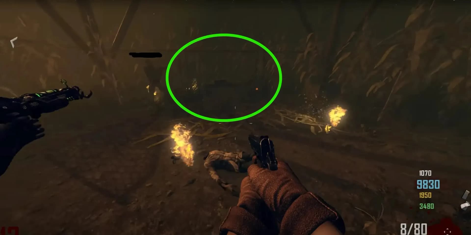 - Jet gun (Richtofen Side, parts found within the Hunter's Cabin, Nacht der Untoten building, Tunnel between Bus Depot and Diner, and near