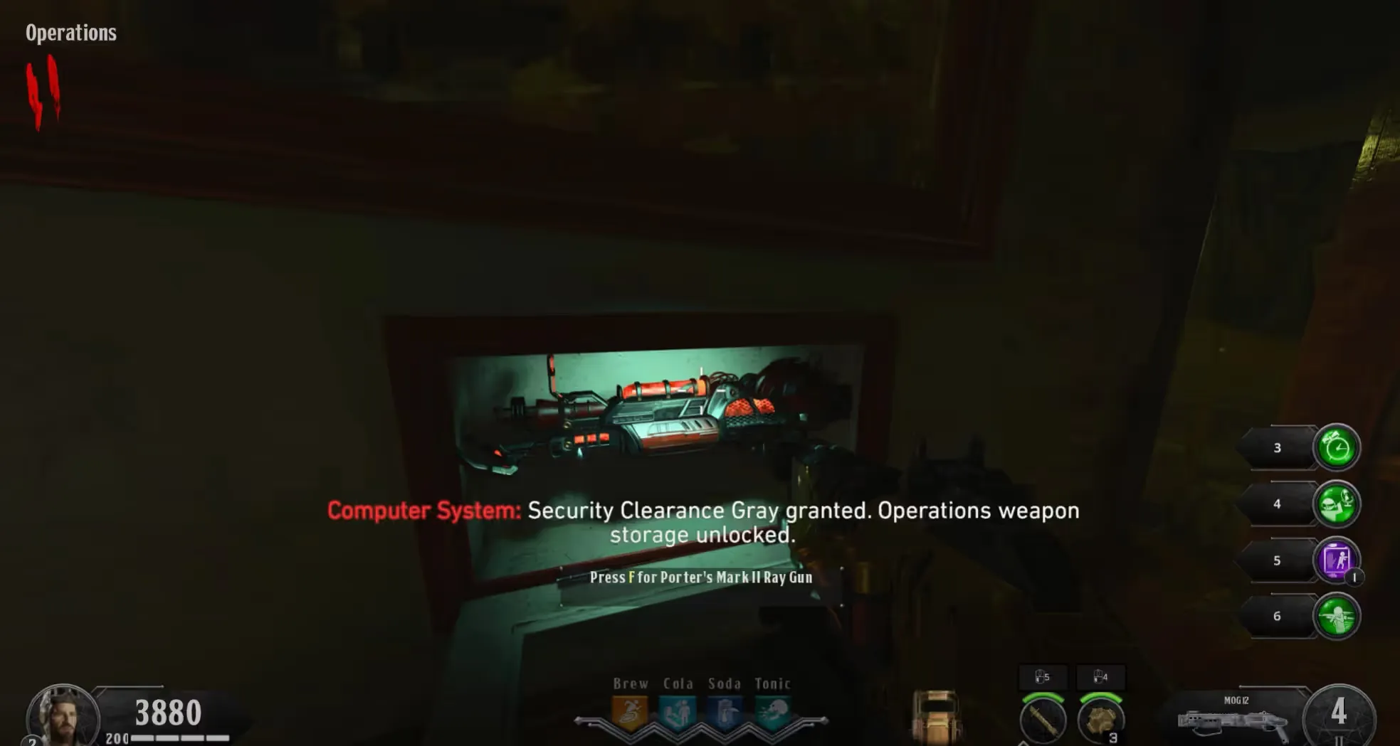 Once all five codes have been entered, head to the Prisoner Holding and Operations houses to claim your free Pack-a-Punched weapons as a reward for entering the codes, the Operations one being a Porter's MKII Ray Gun.