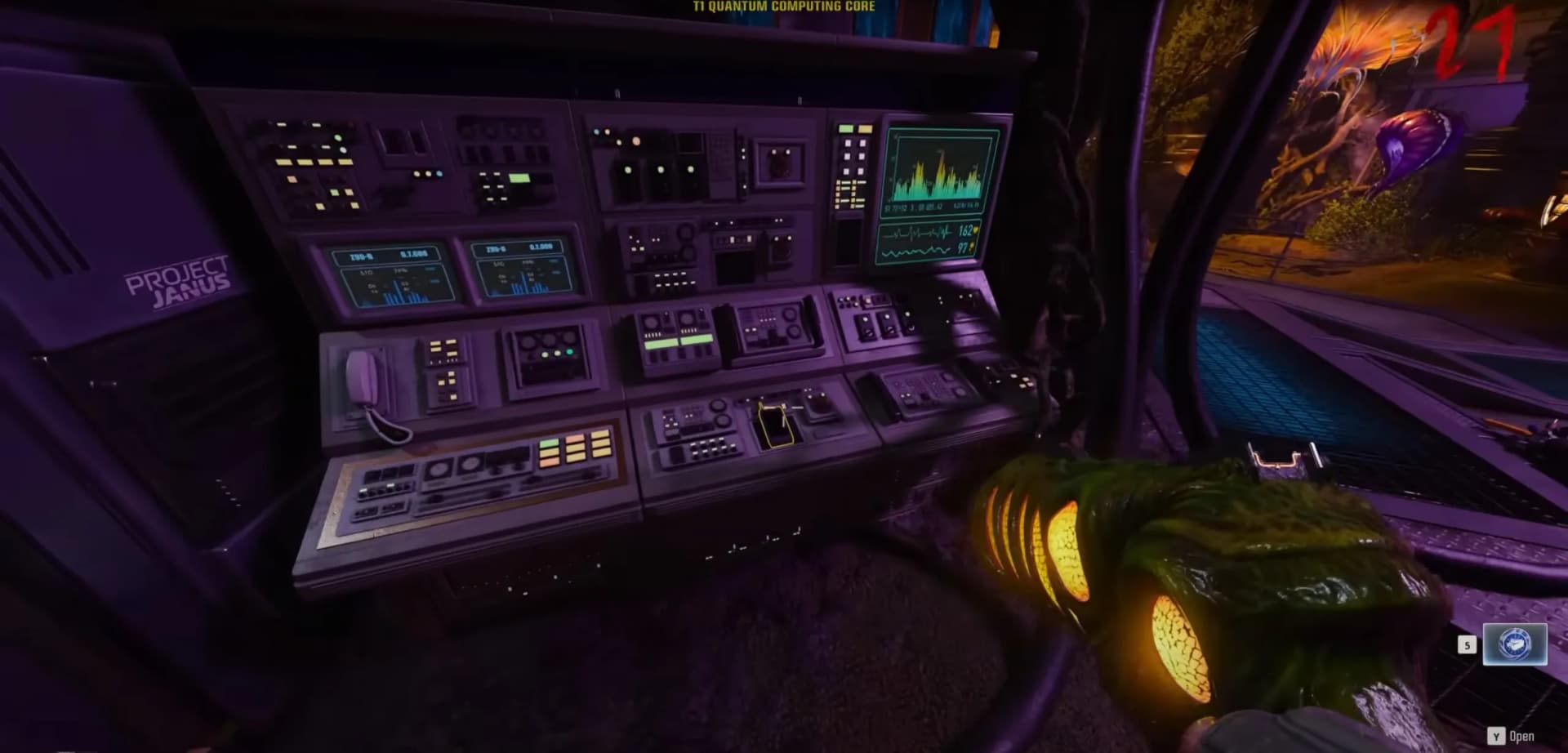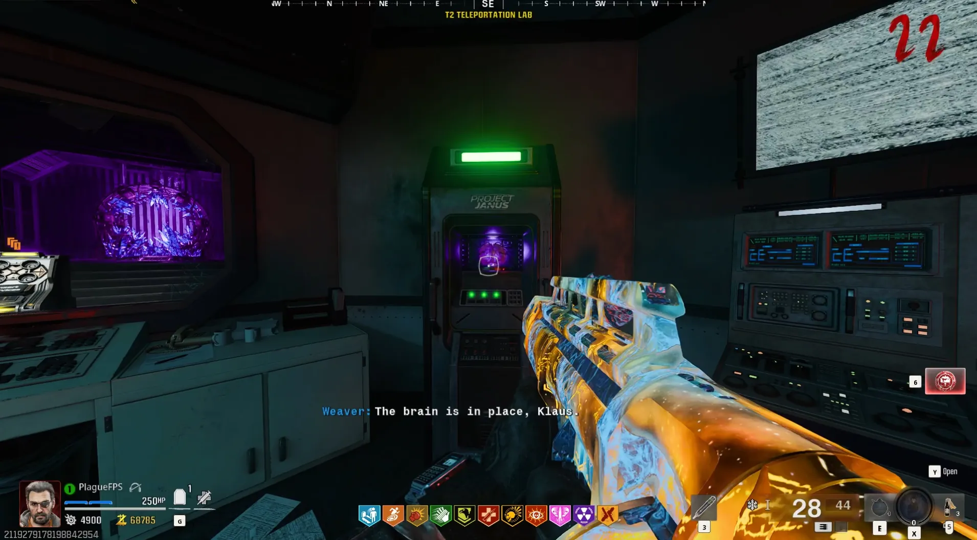 Once picked up, sprint back to the T2 Teleportation Lab and place the brain inside the Project Janus containment chamber to the left of Franken-Klaus with the red lights, turning them green.