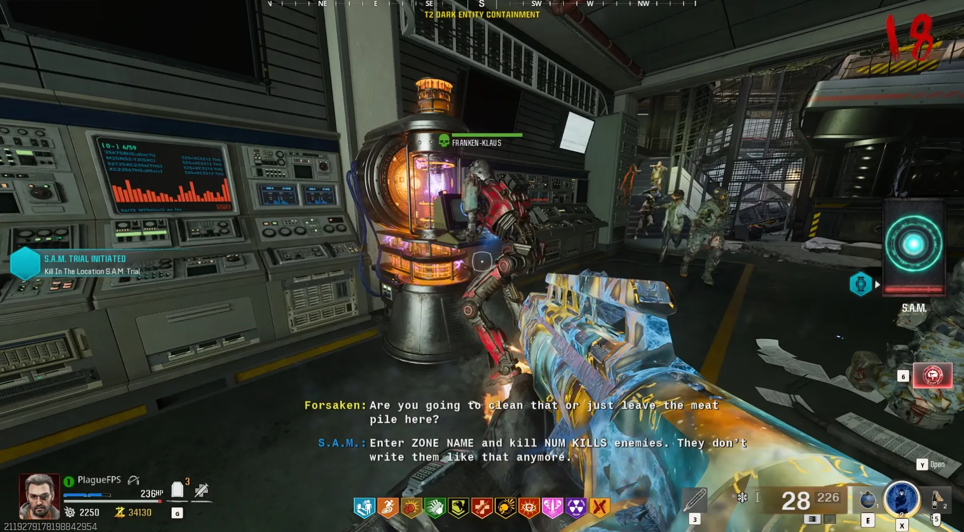 Once Franken-Klaus has been activated, he will begin working on the terminal right next to where he was hanging. Progress a full round to progress his work, where he'll then move to an S.A.M. Trial in the T2 Dark Entity Containment area that you must complete.