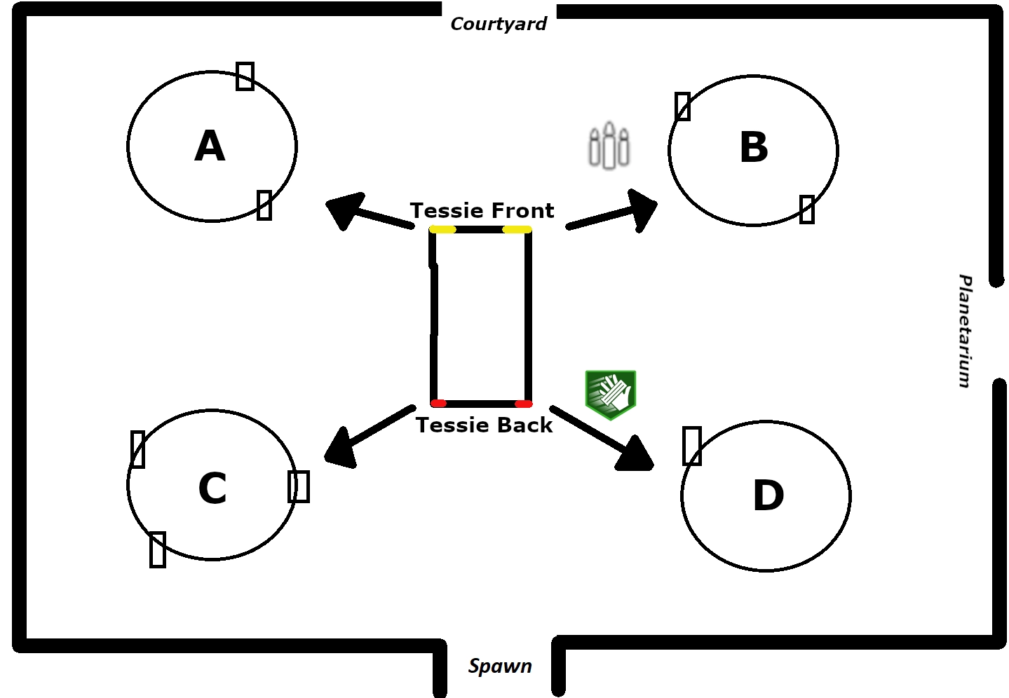 For example, if the lights flashed in the following order: Right Headlight, Right Brakelight, Left Brakelight, Left Headlight. You would need to flop near the chandeliers in this order: D, C, A, B. If you input the order incorrectly, flip the round and try again.