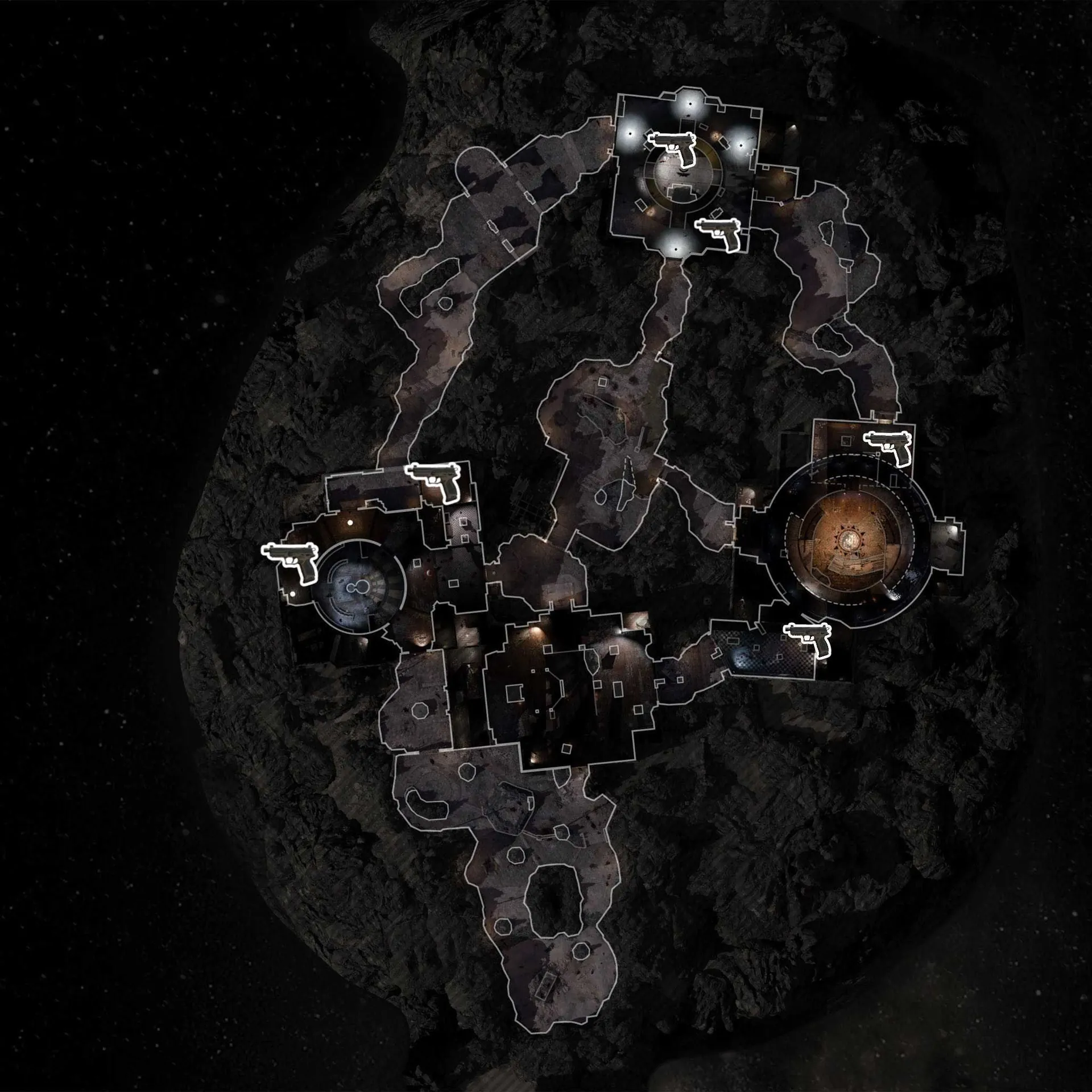 •On Round 20 a common rarity pistol will spawn in one of six locations around the map which you must pick up and whatever round it is/was when you picked it up, is the exact amount of zombies that you need to kill with that pistol. You can upgrade the pistol in any way, however avoid using Ammo Mods, or any damage-dealing perks to make tracking the amount of kills easier. The scoreboard/weapon stats are ideal to keep track of your kills. Below are the six locations the pistol can spawn: