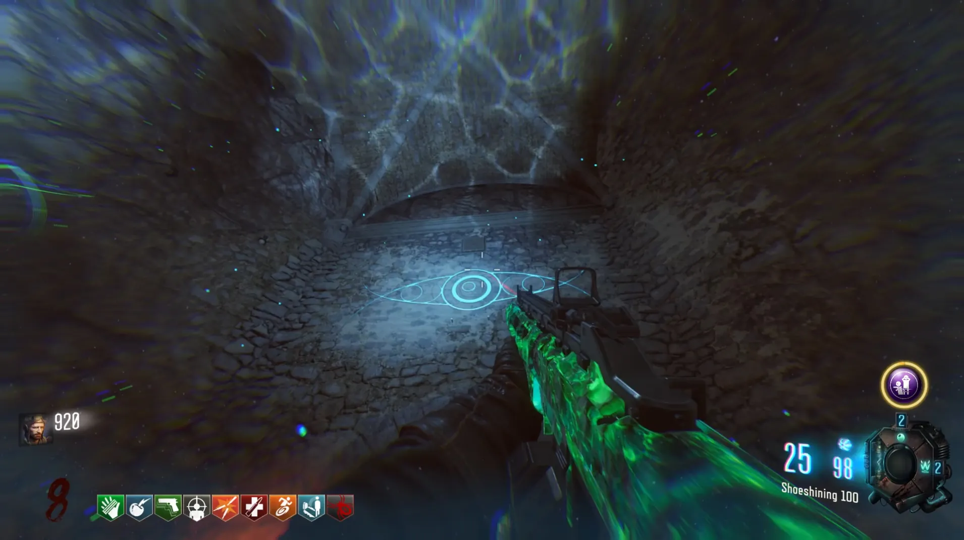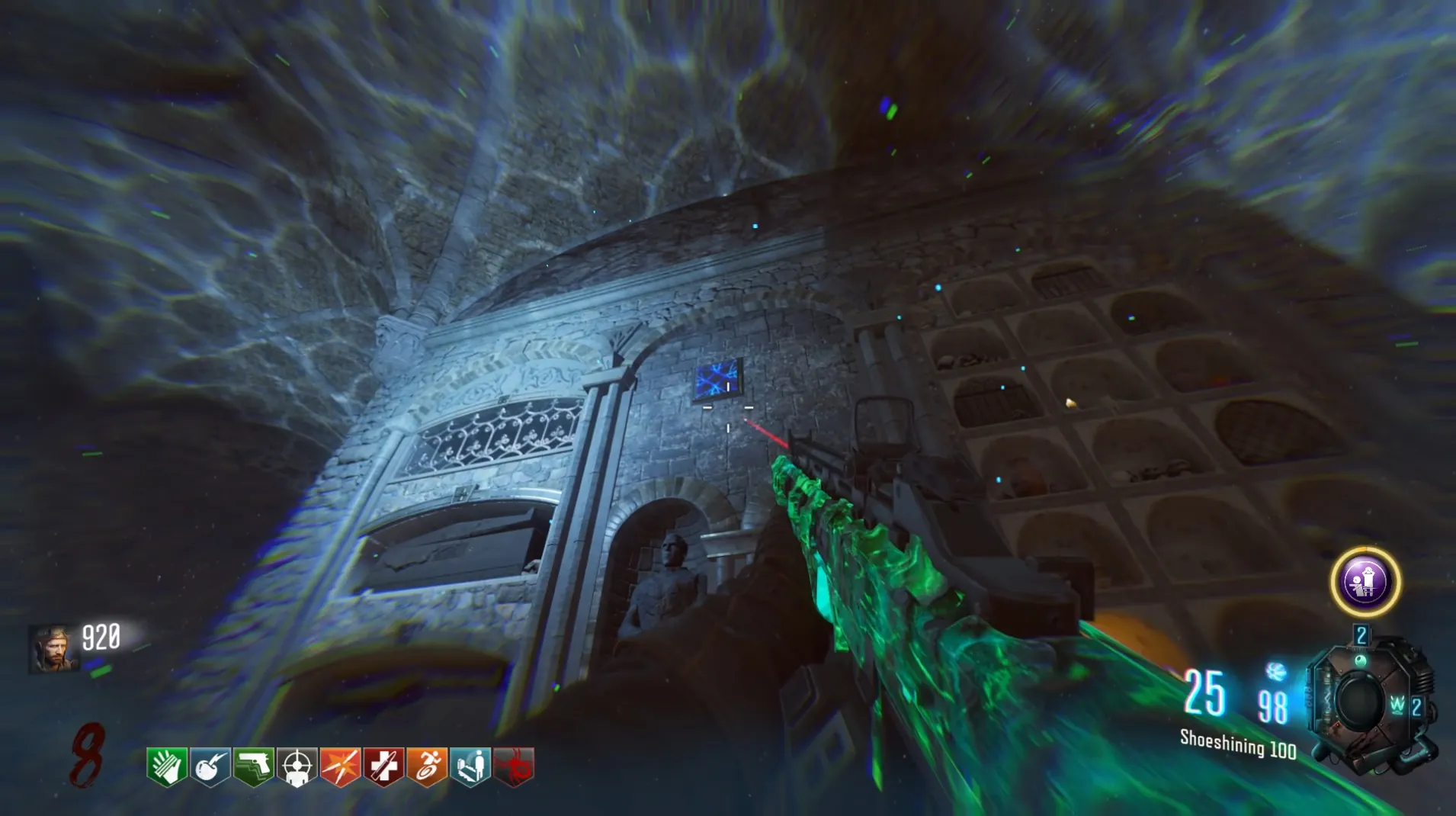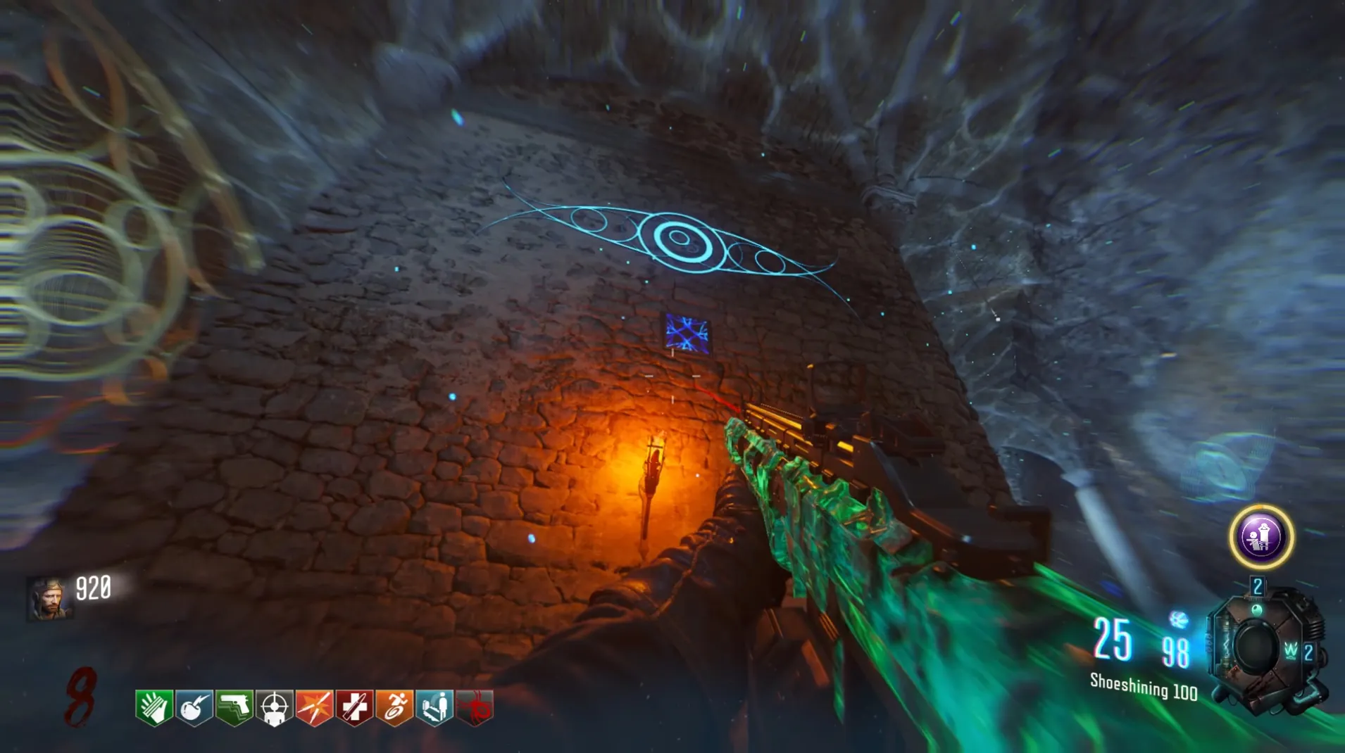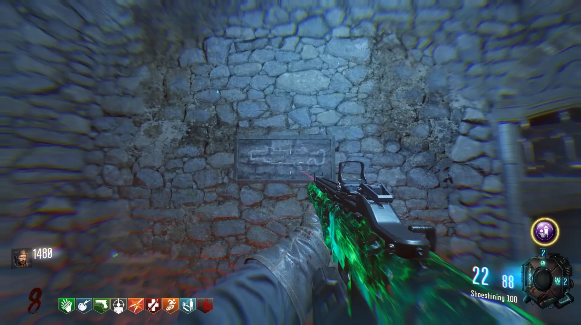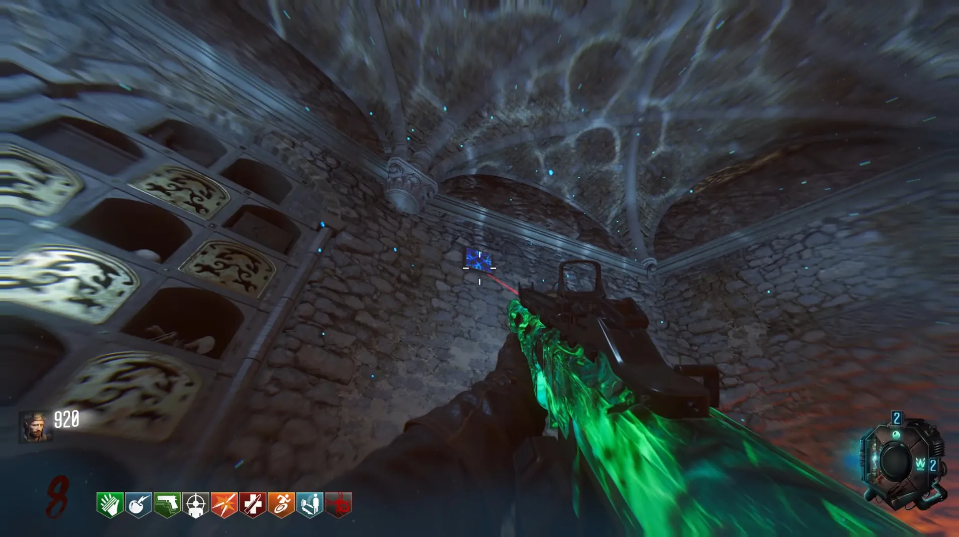 This side quest has players use the Anti-Gravity mechanic in the Undercroft to wall run across six blue tiles to reveal the BRM Wall Buy for 1800 points.