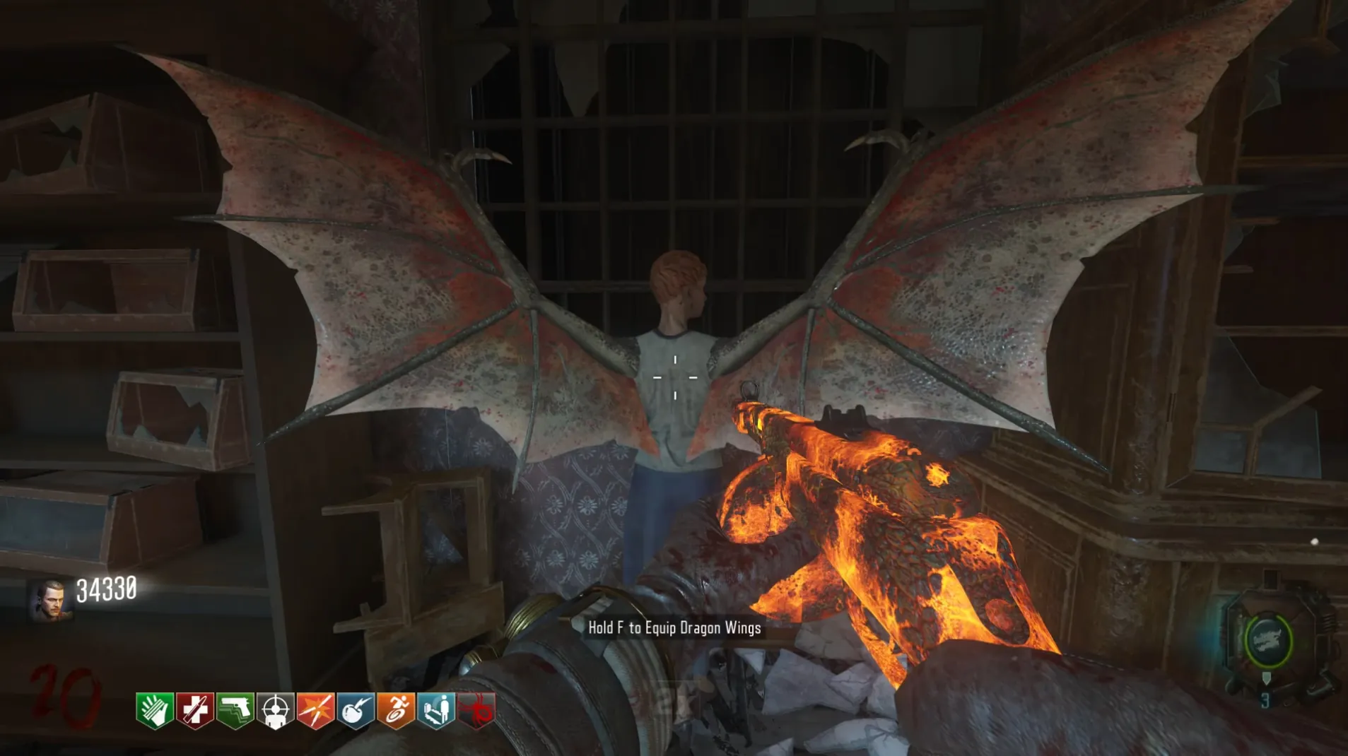 These wings can be obtained by riding the dragon to the Hatchery from all three Dragon Platforms and obtaining the Gauntlet of Siegfried. Once completed, you'll hear a completion audio cue and can find the wings on the second floor of the Department Store.