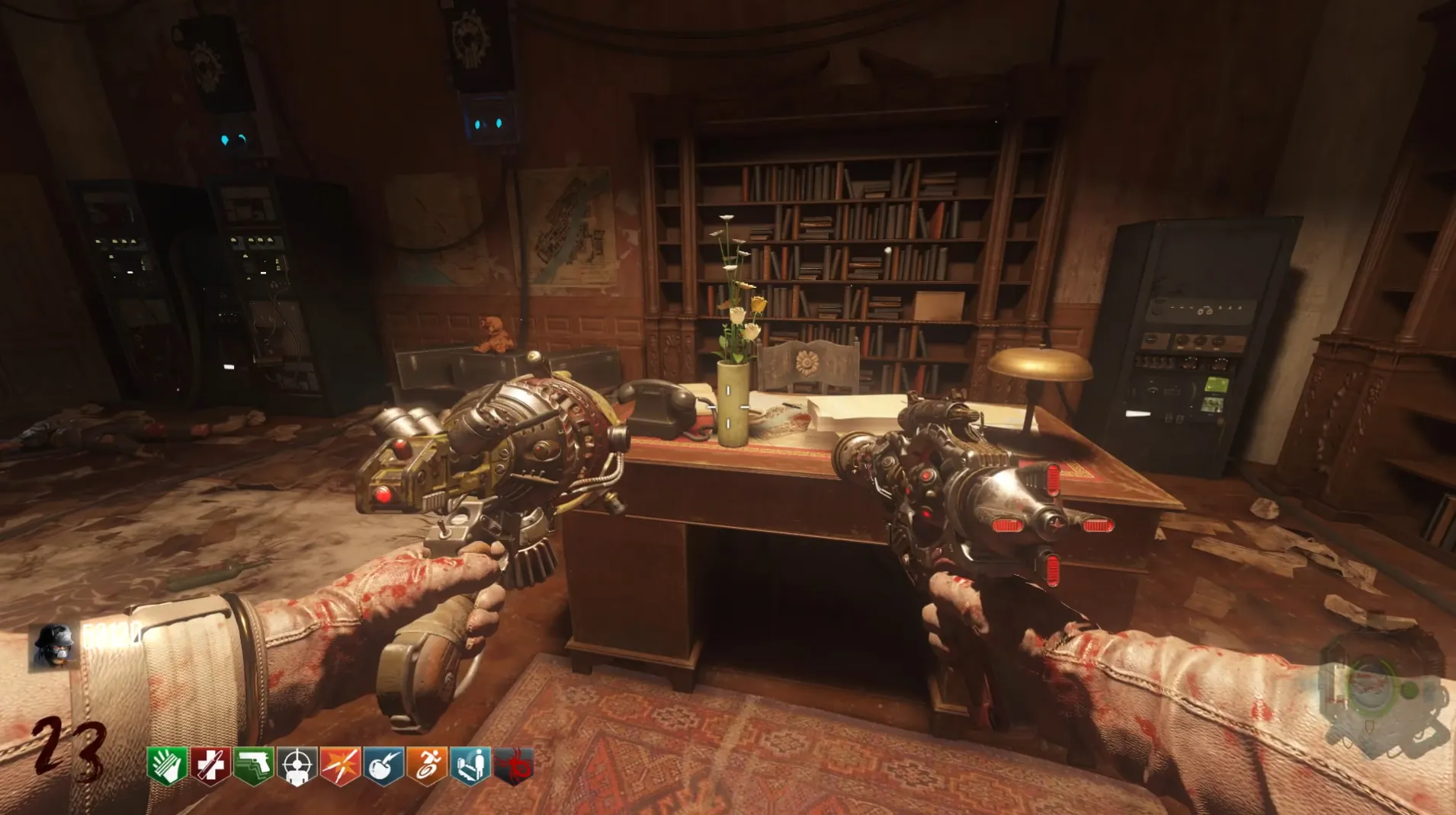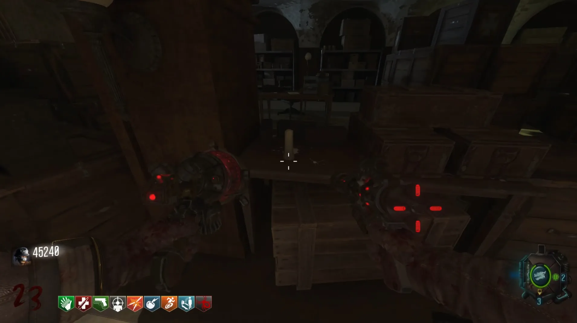 Once you have the candle and the flower vase, kill twenty-five zombies using the Monkey Bombs, and you should get a blue-glowing Flask Power-Up to drop from a zombie that you'll need to pick up.