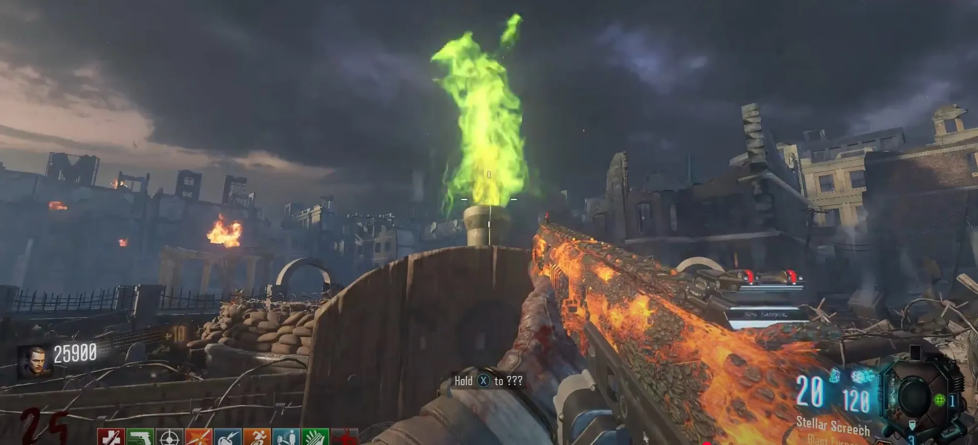 This side quest has players light a candle using the Guard of Fafnir in one of four locations, pick it up, then find and pick up a flower vase in one of four locations, then kill twenty-five zombies with the Monkey Bombs until a glowing blue Flask Power-Up drops from a zombie, which you can turn in to claim your Upgraded Monkey Bombs.