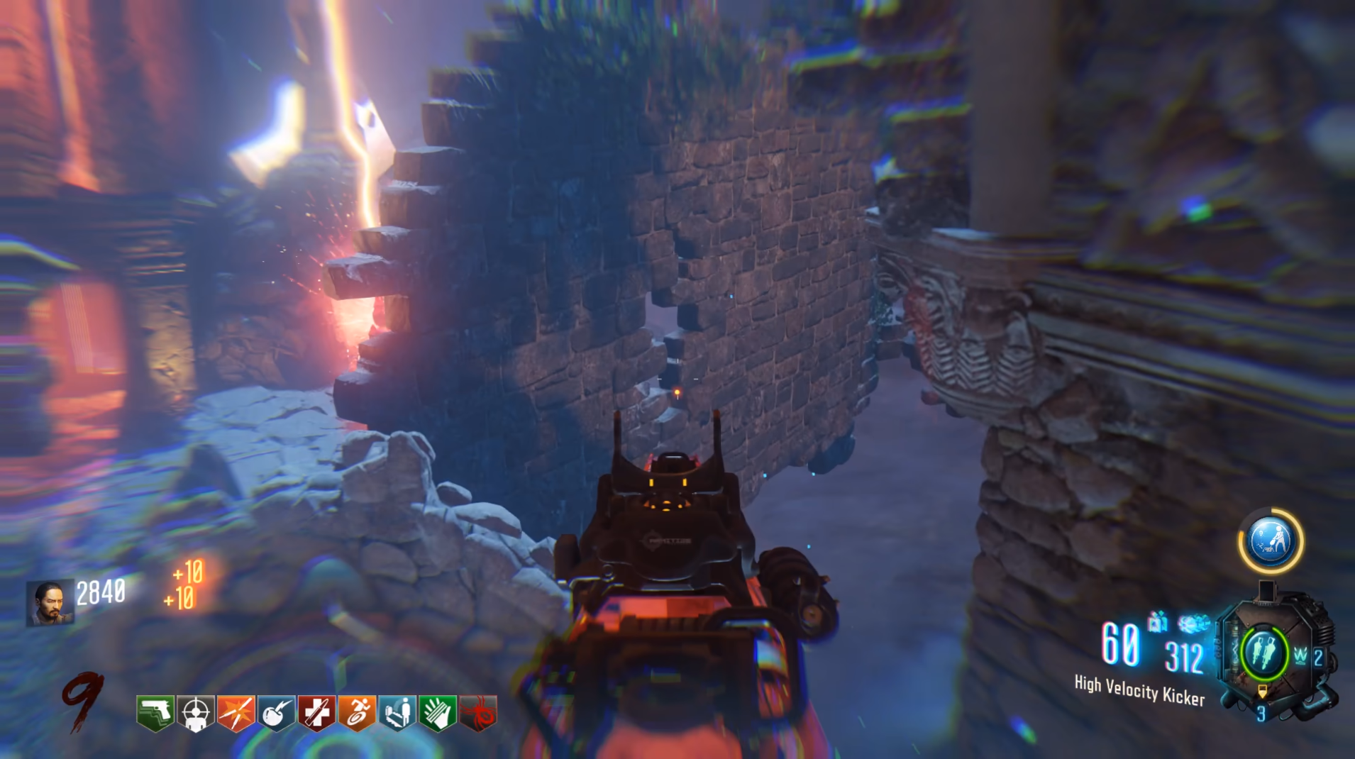This side quest requires players to utilize the Anti-Gravity wall run mechanic in the Der Eisendrache area of the map to wall run outside the map and up towards a floating Free Perk Power-Up.
