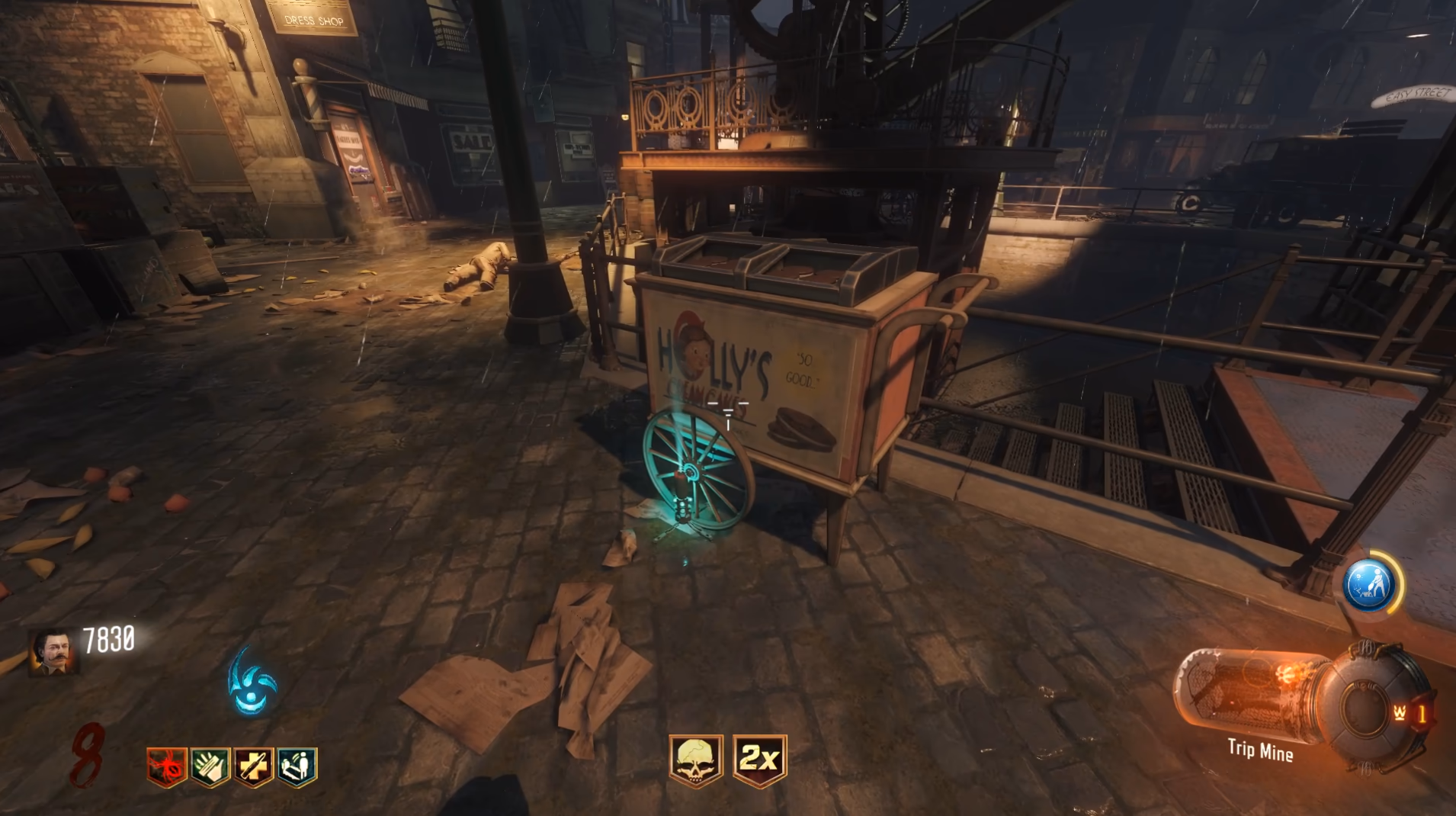 This side quest has you kill a zombie with Trip Mines at each of the three "Holly's Cream Cakes" carts around the map to upgrade them into a powerful, doughnut-fueled upgrade.