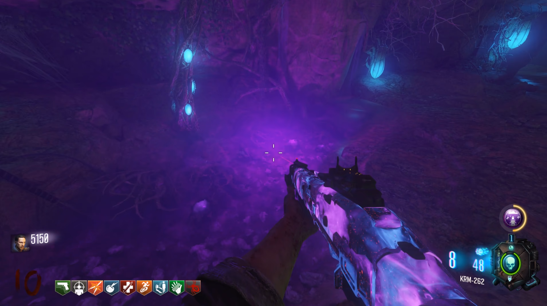 The KT-4 is required to gain access to this boss fight, as it is locked behind one of the blue webs found around the map that can only be destroyed with a shot from the KT-4.
