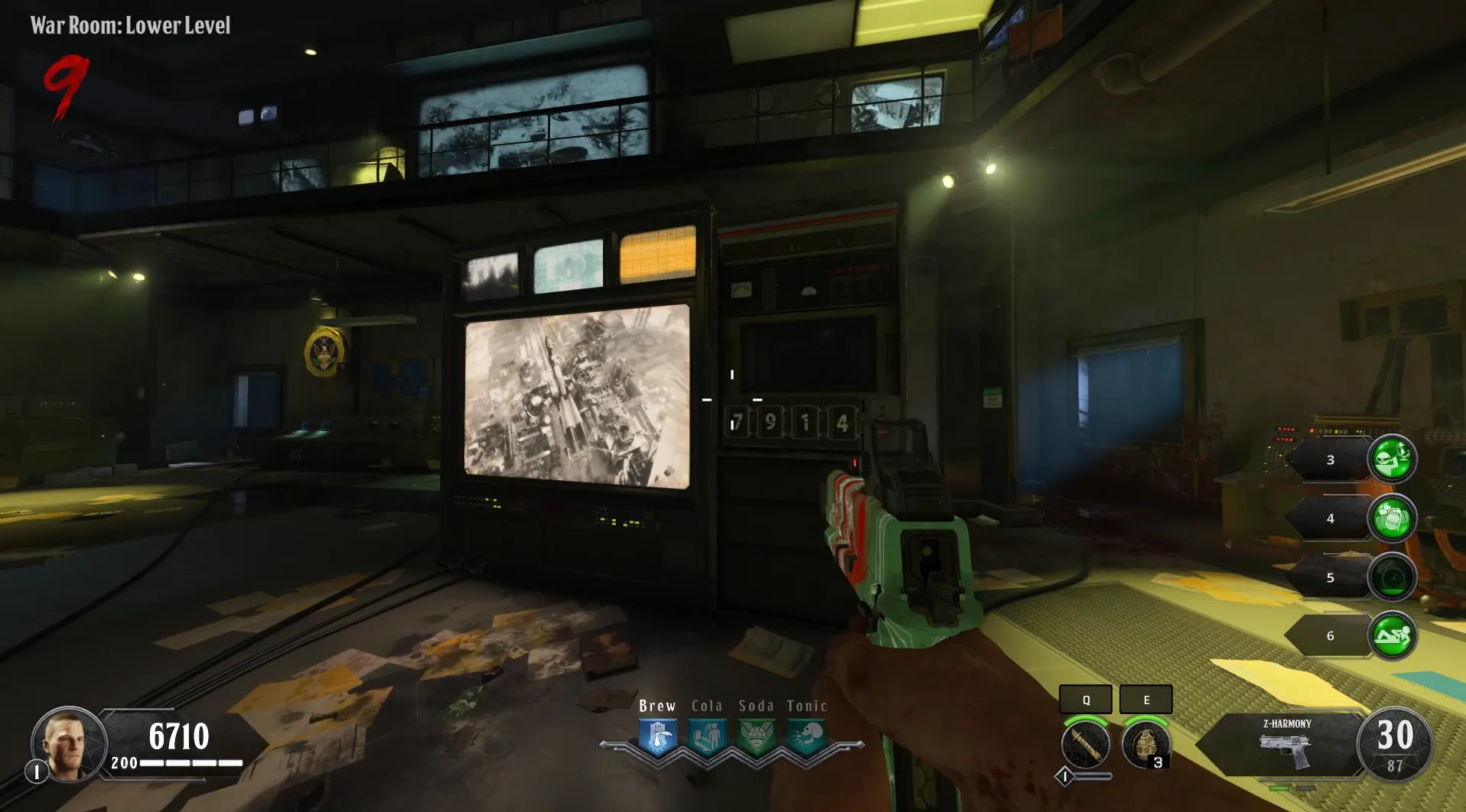 Head down to the War Room: Lower Level, and enter the four codes into the computer with a number ticker on it in the following order: