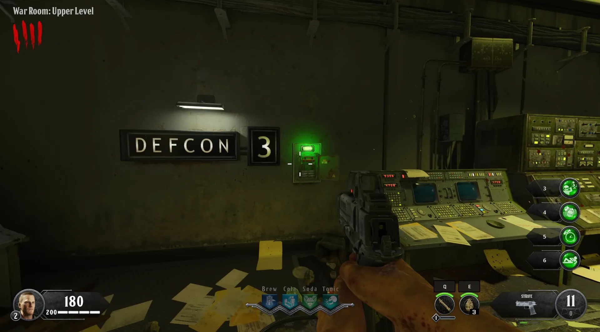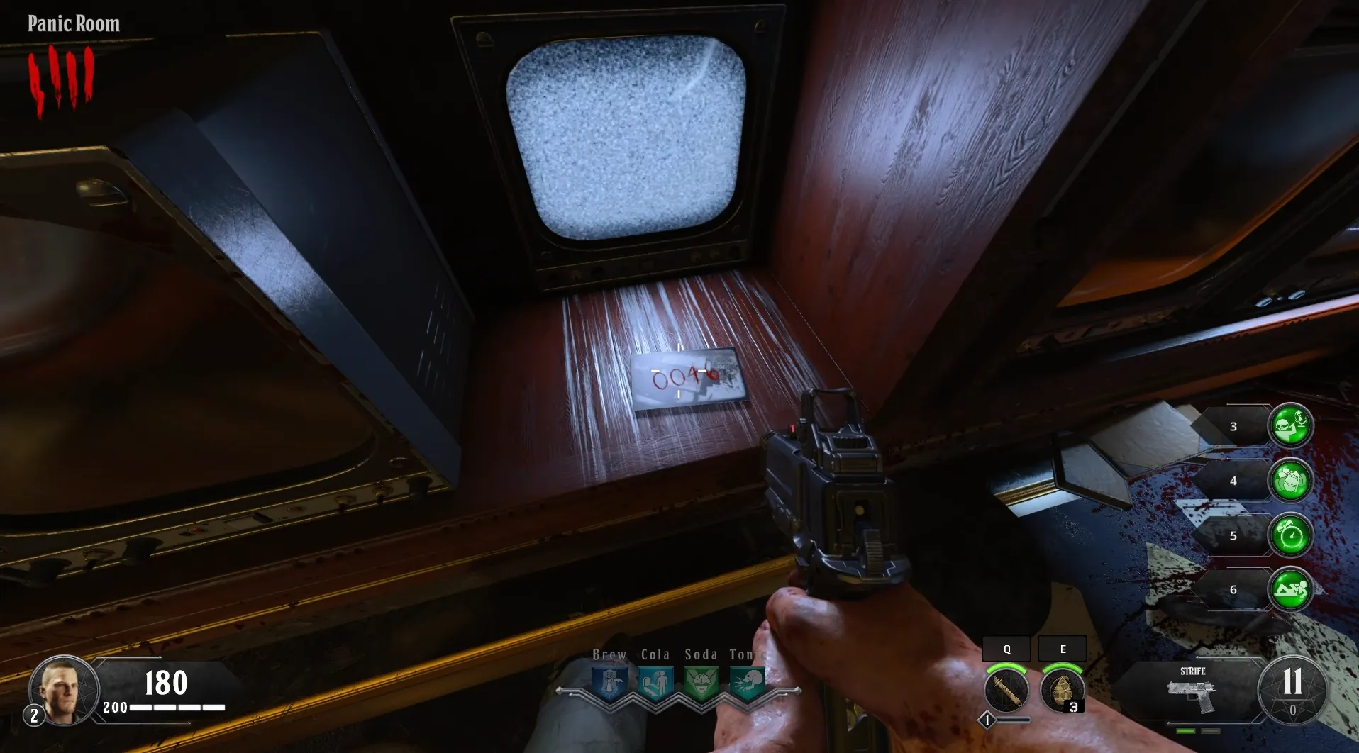 Once you have entered DEFCON 5, entering the Panic Room using the teleporter in the center of the War Room and interact with the static screen on the left-hand wall to reveal the code.