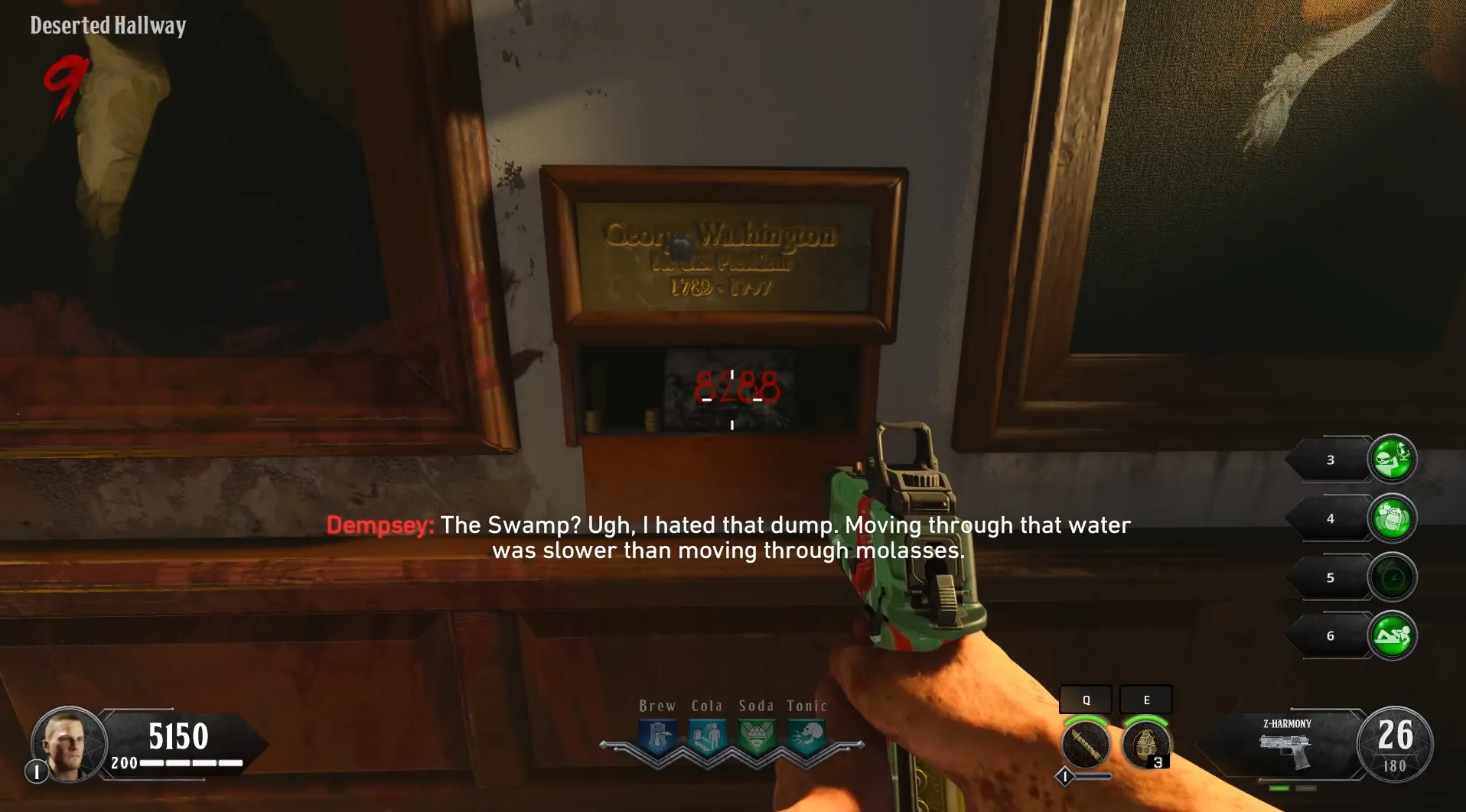 Head to the Deserted Hallway, and with a Pack-a-Punched weapon, shoot the nameplates in the following order: