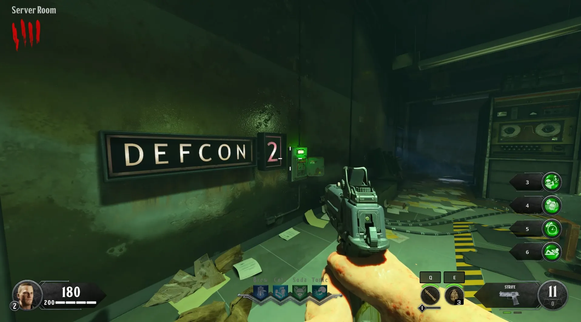 Interact with the key rack next to the Cola Perk Machine to collect a key you can use to unlock one of the desks in the Main Offices, revealing the second code.