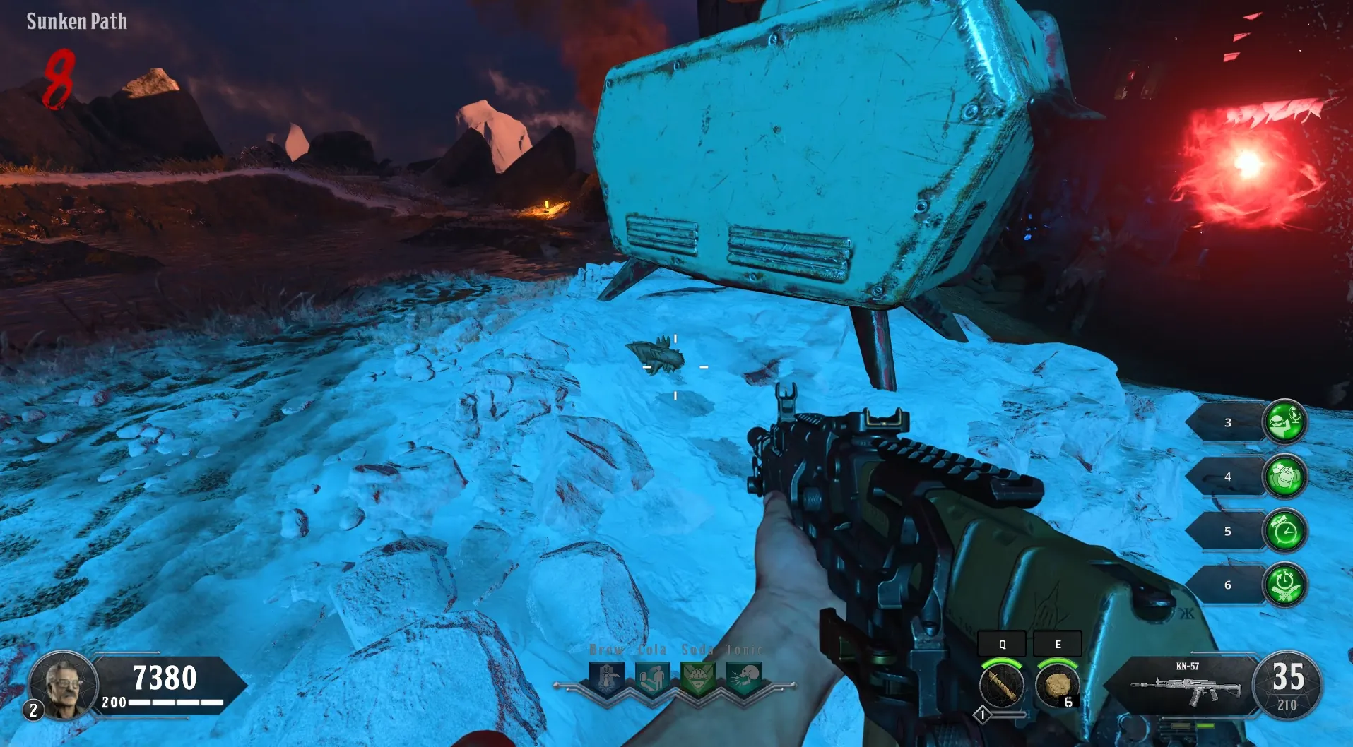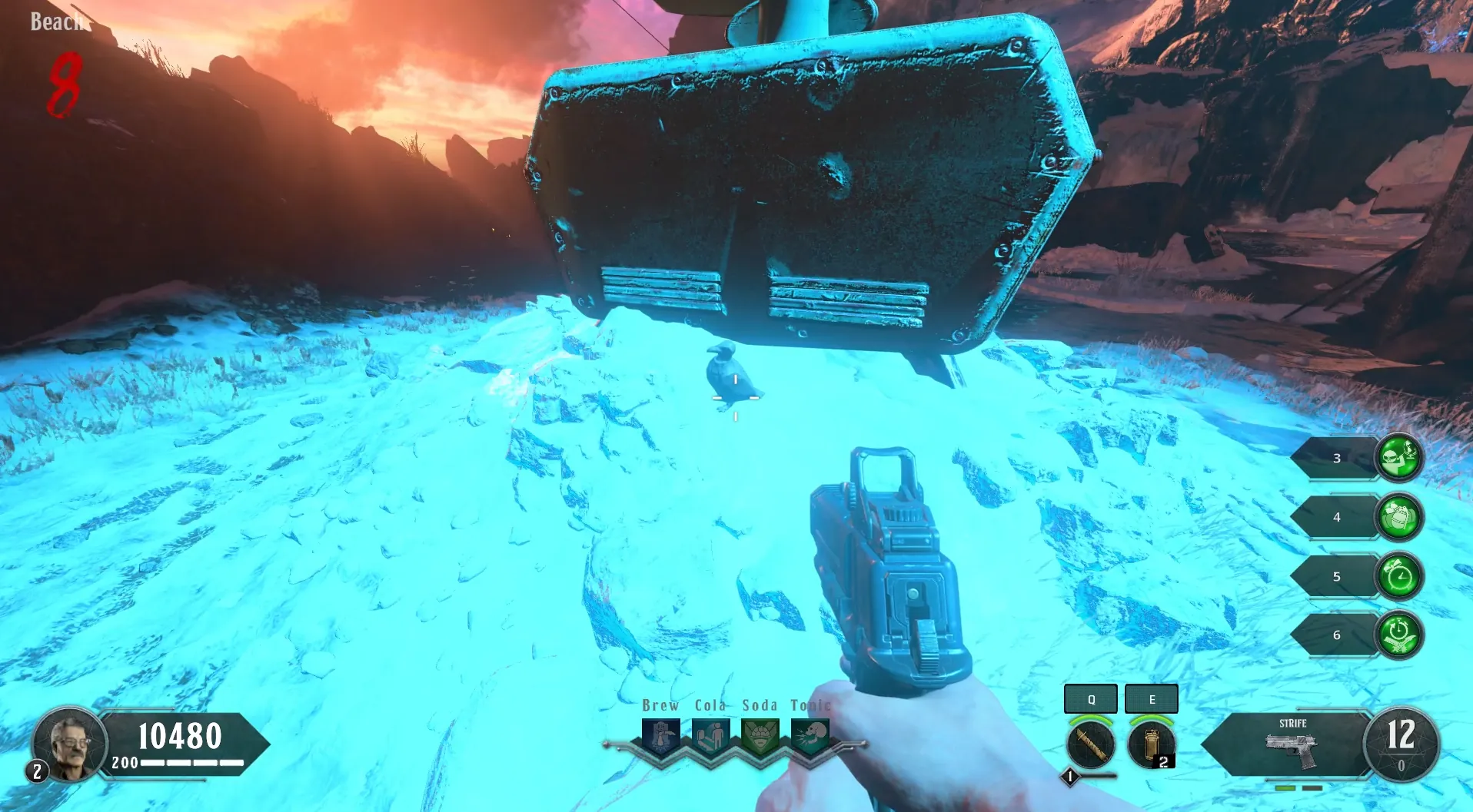 Once you have all five statues, head to the Beach and interact with the small altar near the water to place the statues. This will begin a small lockdown of Electrified Zombies on the next round. Once completed, your free Random Perk Power-Up will spawn at the small altar.