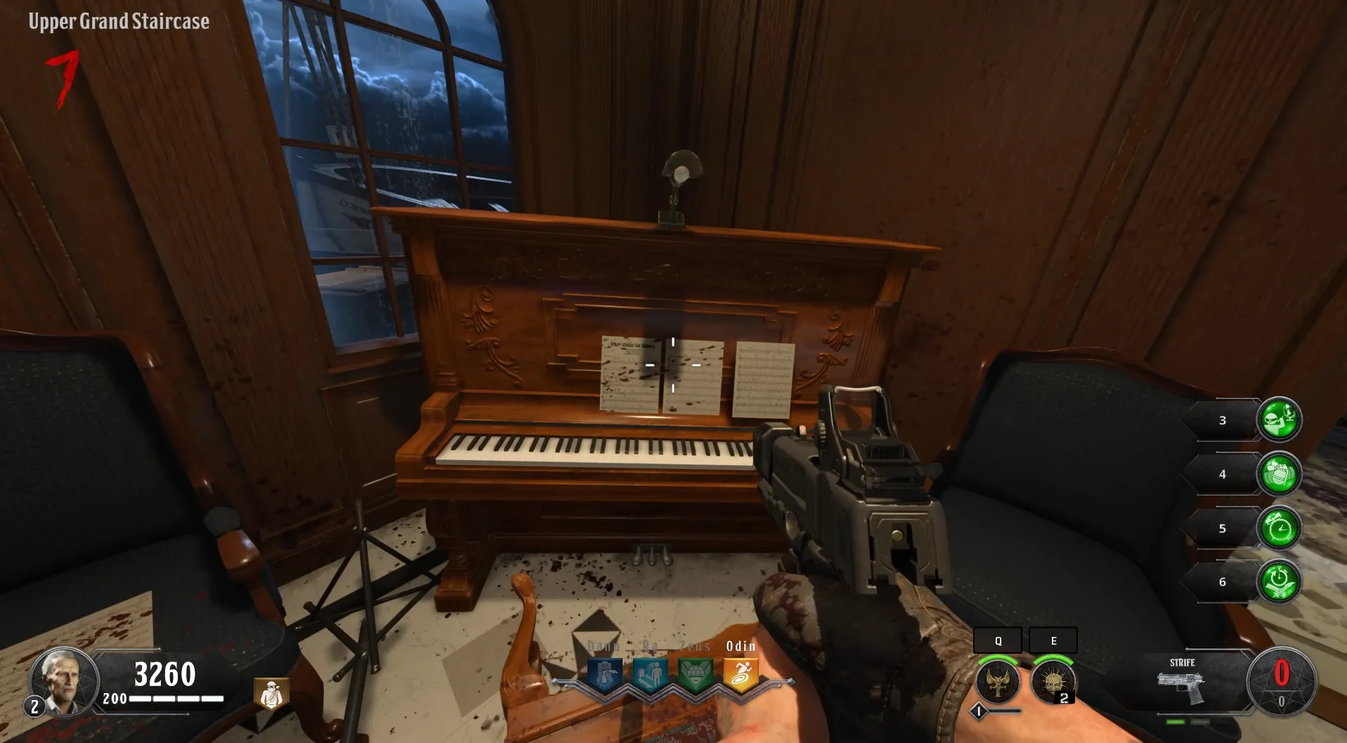 This side quest has players find three sheets of music and place them on three different pianos found around the map, then use your Special Weapon to melee all three pianos in any order and then finally the Mystery Box all within a single use of the your Special Weapon.