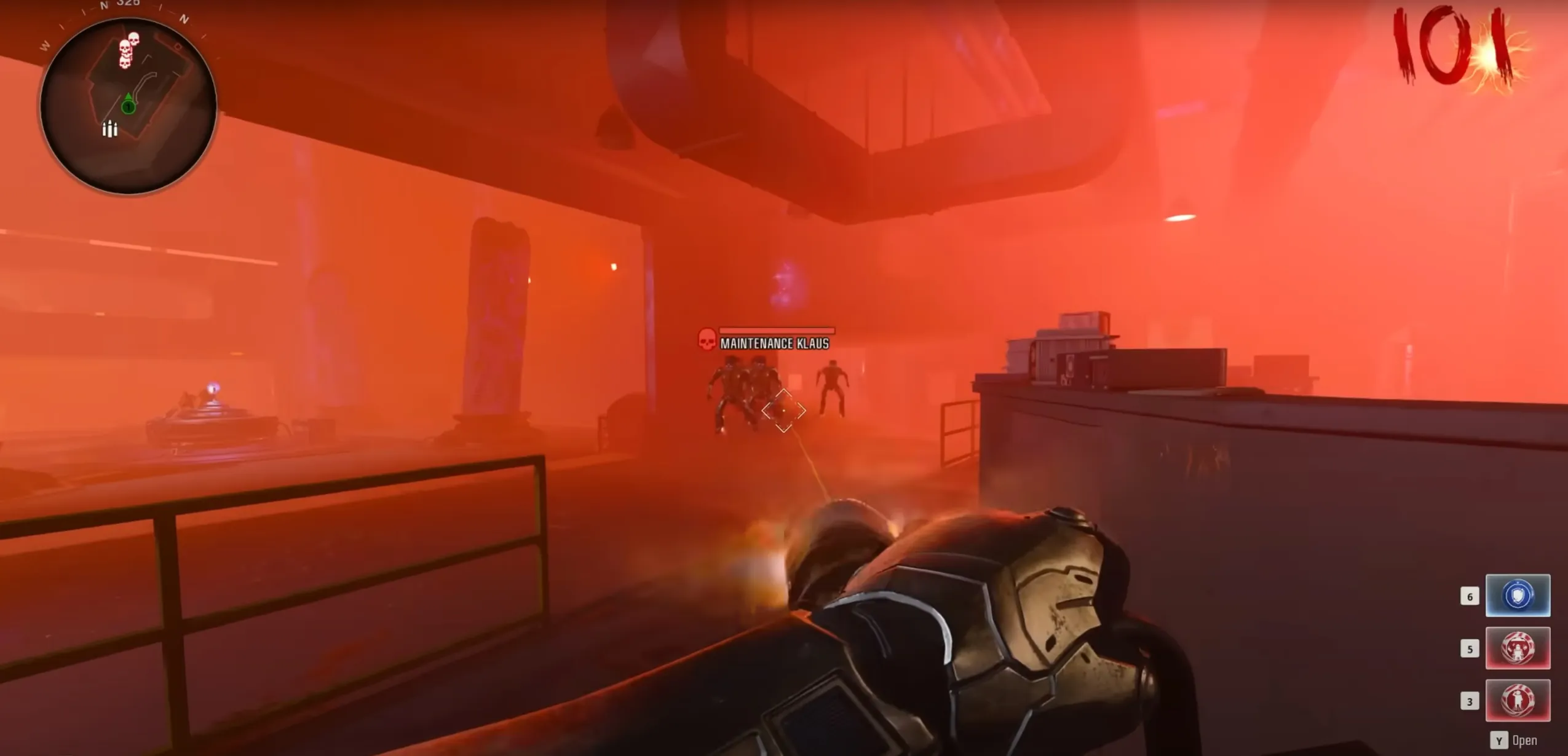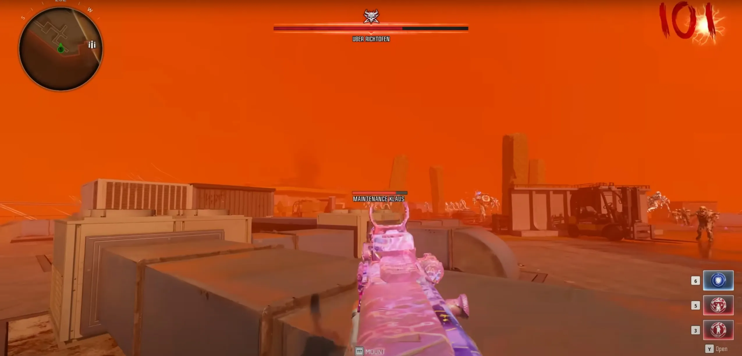 During this phase, you'll want to constantly run around the outer edge of the arena, shooting at Uber Richtofen weak points, ignoring the Uber Klaus Core robots that spawn in, and constantly sliding to avoid their ranged electrical attack.