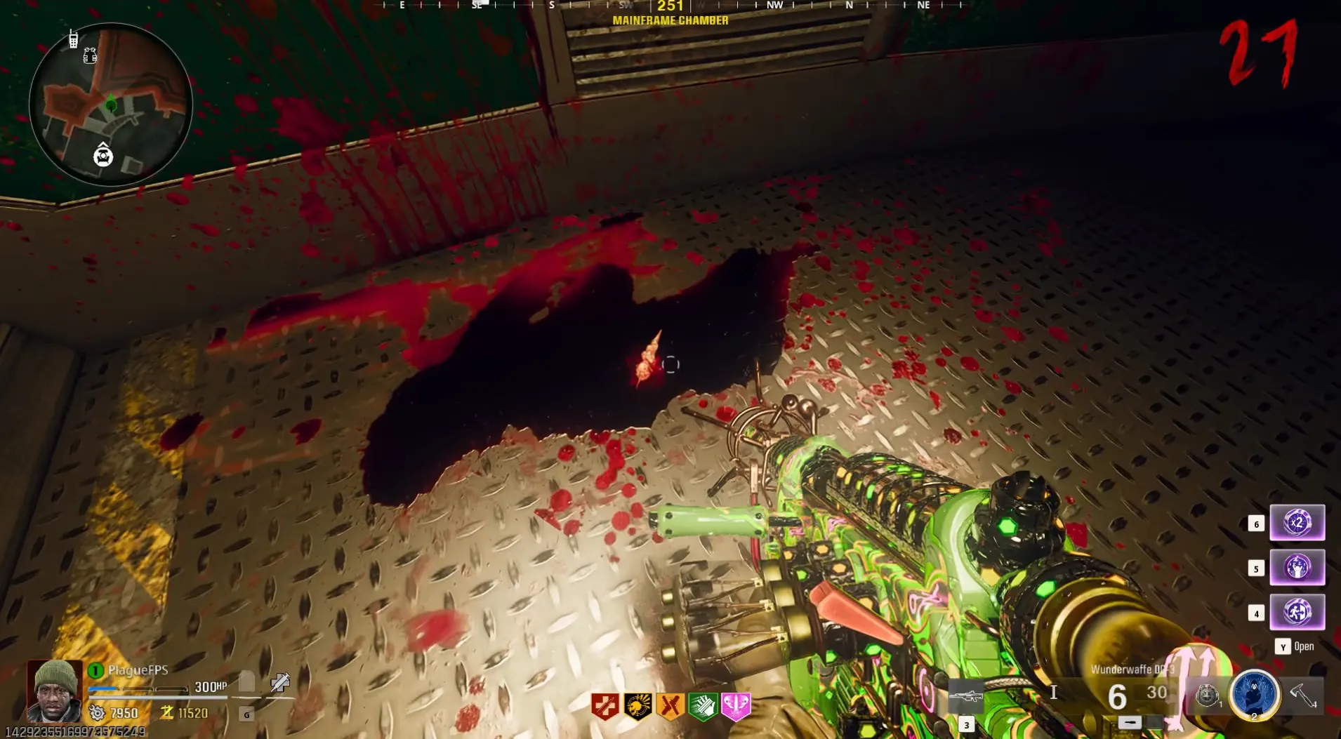 Head back down to the Mainframe Chamber, and on either staircase leading up to the Pack-a-Punch Machine will be a pool of blood that you can crouch down and place the Vermin on by interacting.