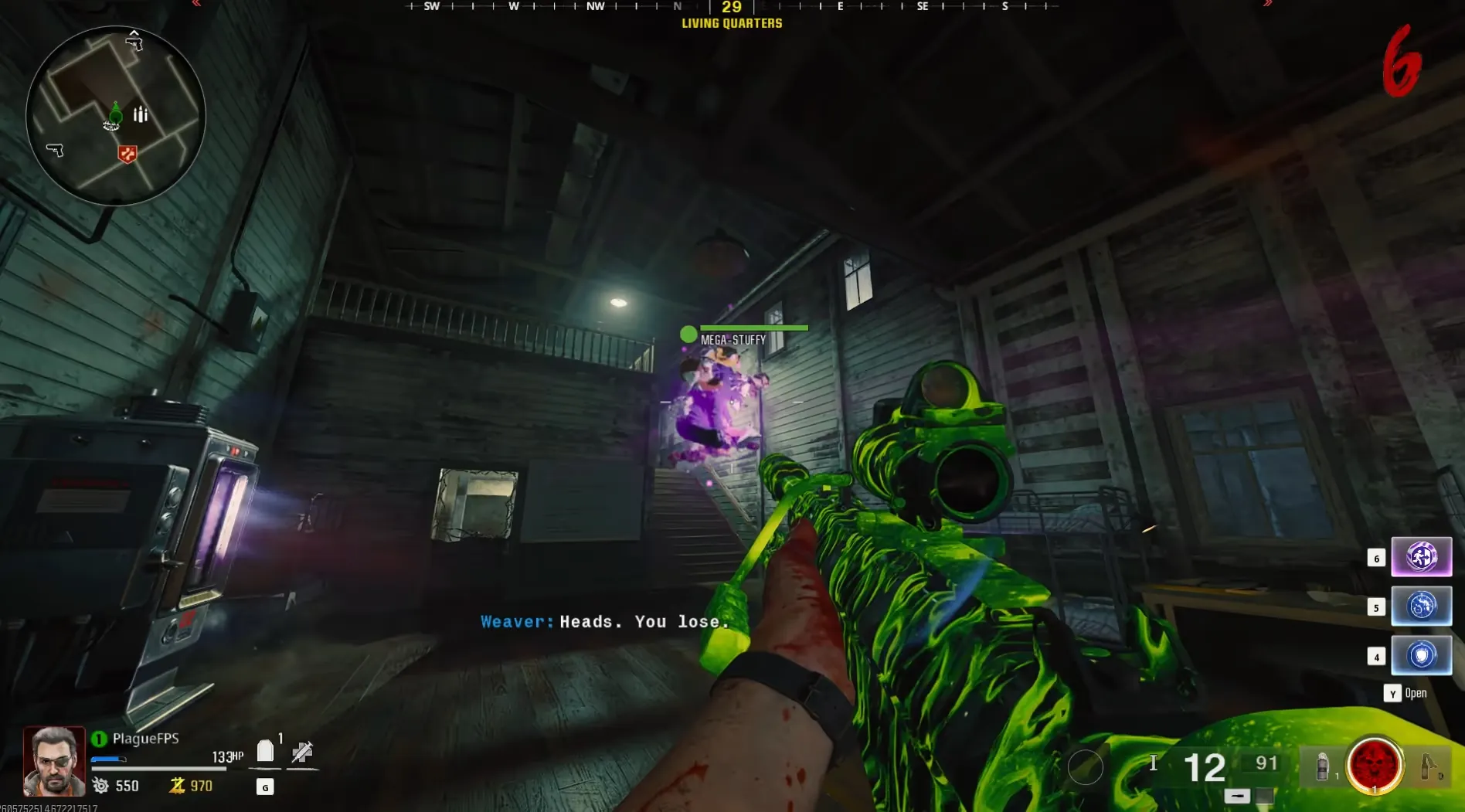 Head to the Living Quarters and interact with any of the six stuffed animals on the beds, they will all start hovering toward the center of the room and combine to form Mega Stuffy, who can revive you and knock down zombies, but only lasts for a limited time.
