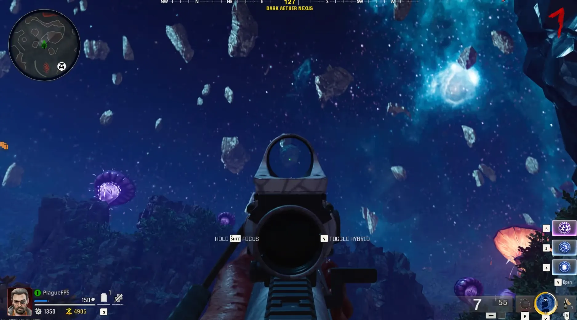 To start this side quest, head to the Dark Aether Nexus, where you will need to shoot one of five specific floating rocks in the sky to get it to begin moving. These rocks are in the same locations every game, but they do not appear much different from the others at first. Below is an image of one of the rocks that you can shoot at every game to begin the quest.