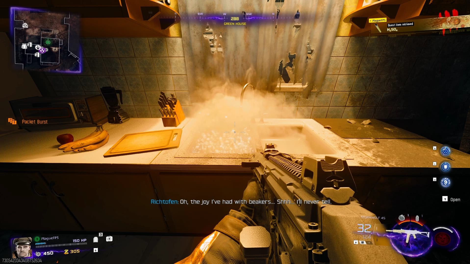 In the Destroyed version of the map, you'll find a SO3 vial in the Yellow House Upstairs which you can interact with to pick up. Once obtained, head to the Green House kitchen and interact with the sink full of water to create a vial of H2SO4.