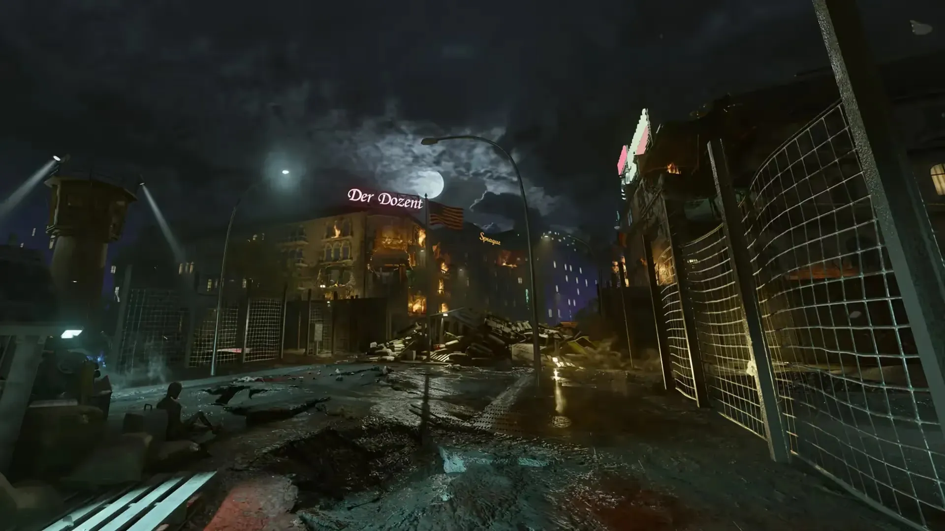 The targets will appear throughout the rooftops/windows of all the stores visible from left-to-right, with the final target coming down the zipline from the Observation Tower.